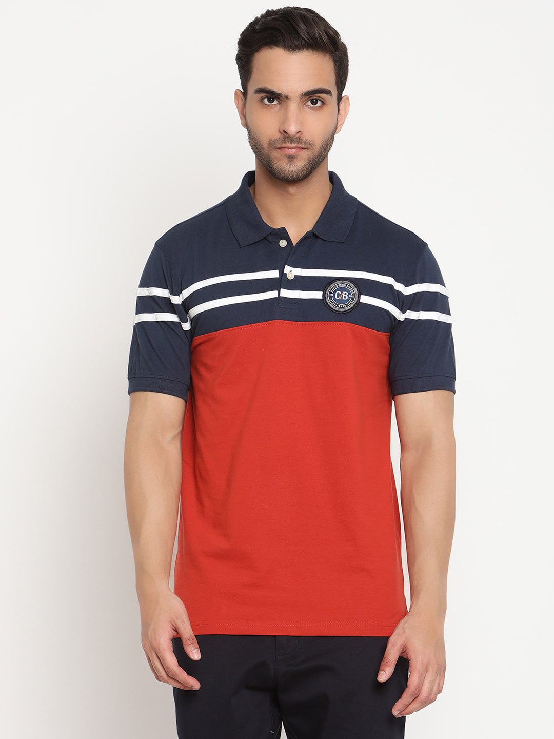T-Shirt for Men | Breathable & Soft with Color Fastness Regular Fit Polo Neck Poly Cotton Fabric Color Block Pattern