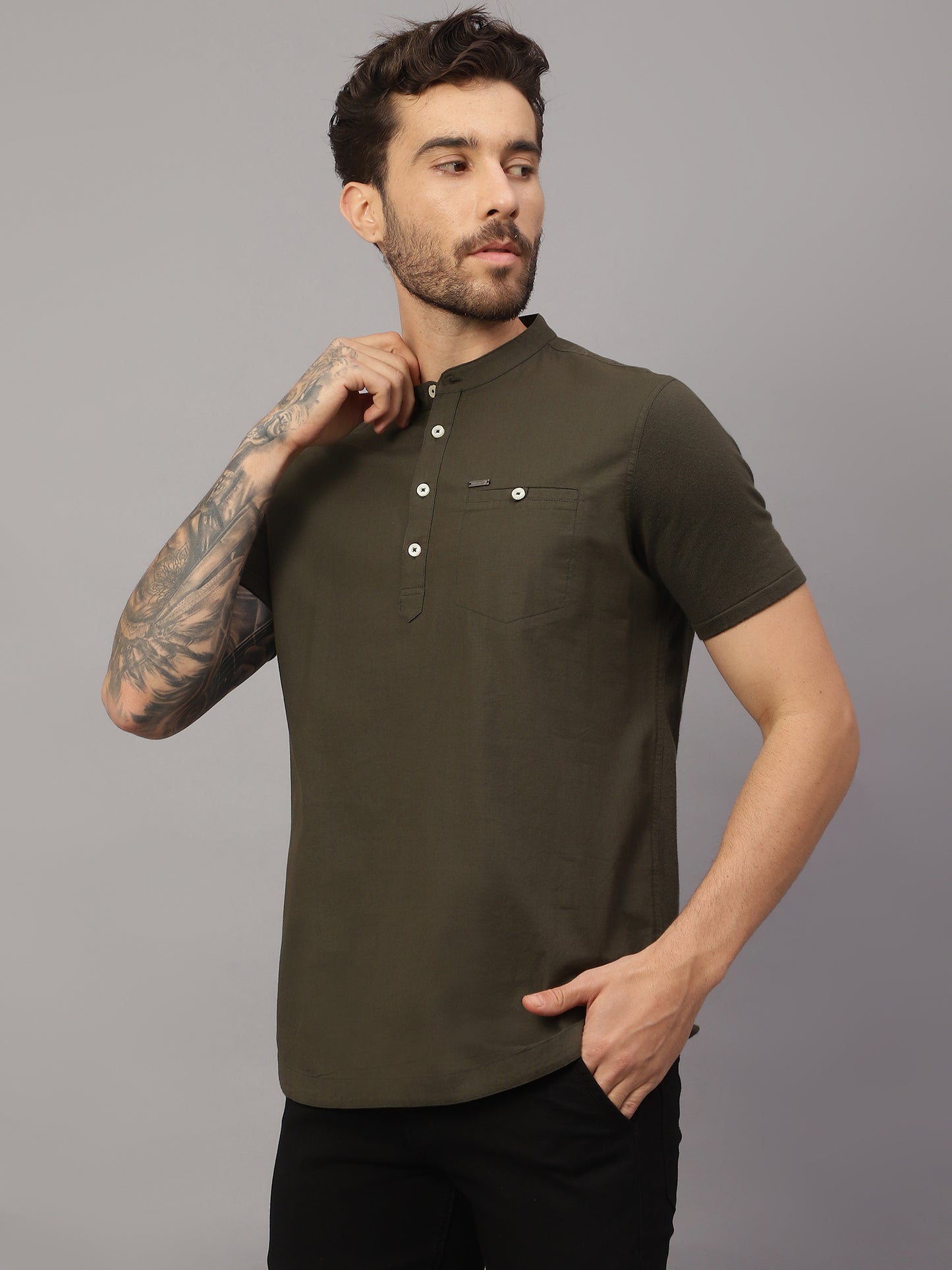 Men's Olive Green Casual Plain Half sleeve Shirt Kurta