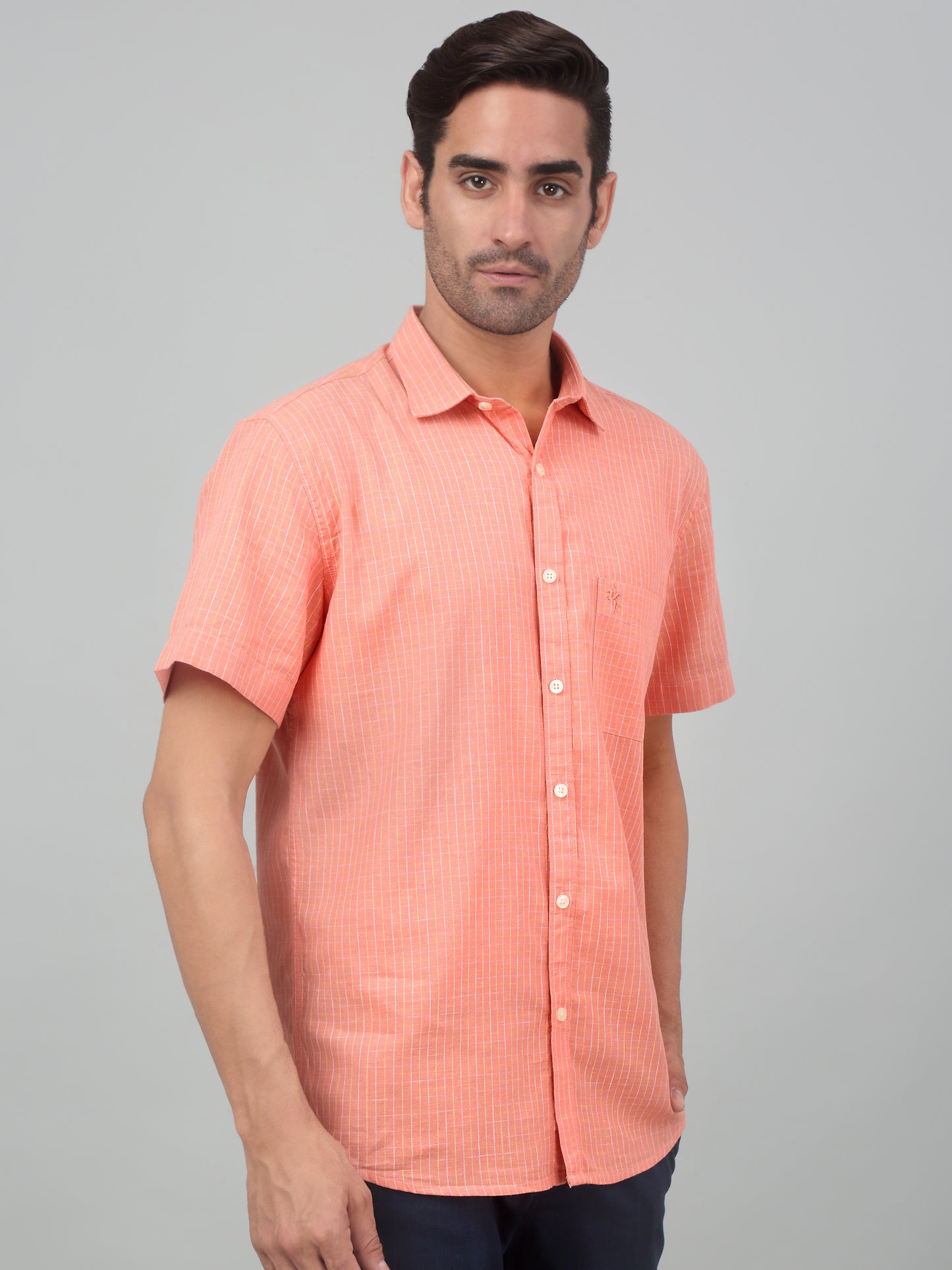 Casual Shirt for Men | Breathable & Soft with Color Fastness Regular Fit Spread Collar Neck Cotton Fabric Striped Pattern