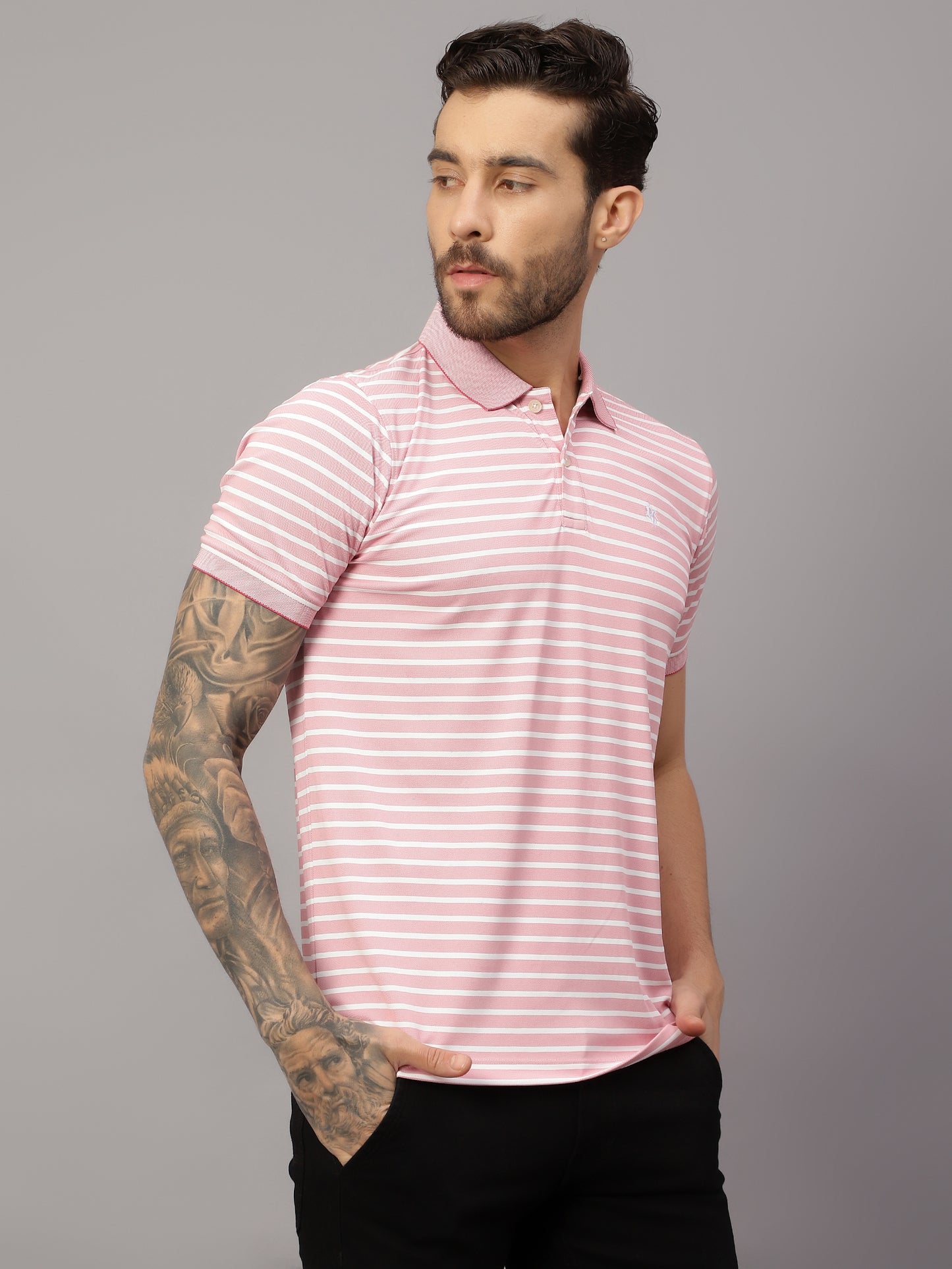 T-Shirt for Men | Breathable & Soft with Color Fastness Regular Fit Polo Neck Poly Cotton Fabric Striped Pattern