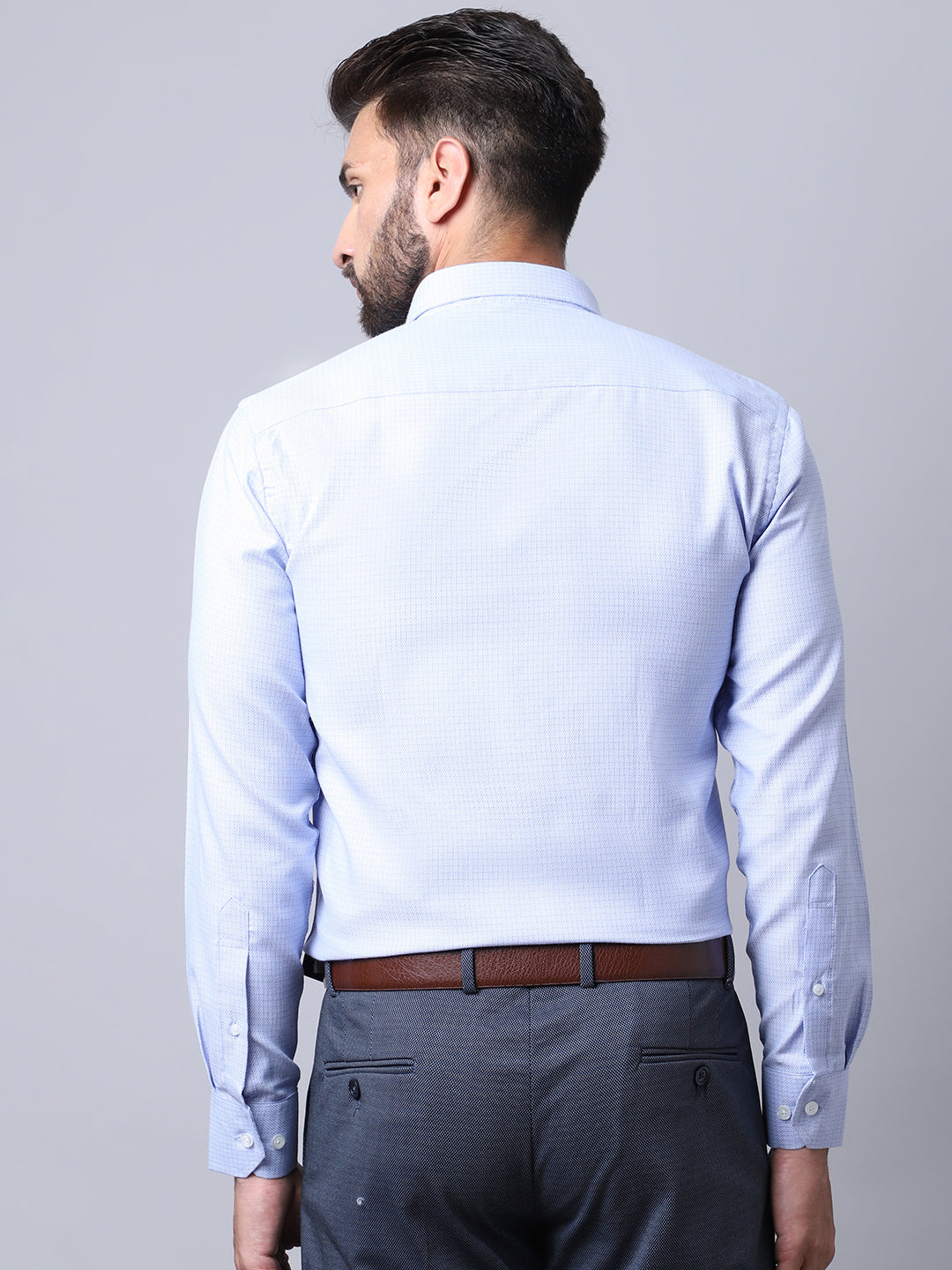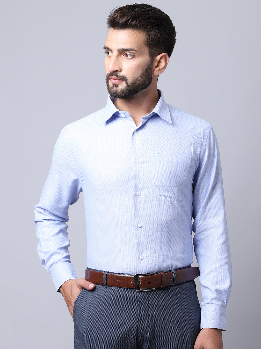 Men's Sky Blue Formal Small Checks Full Sleeve Shirt