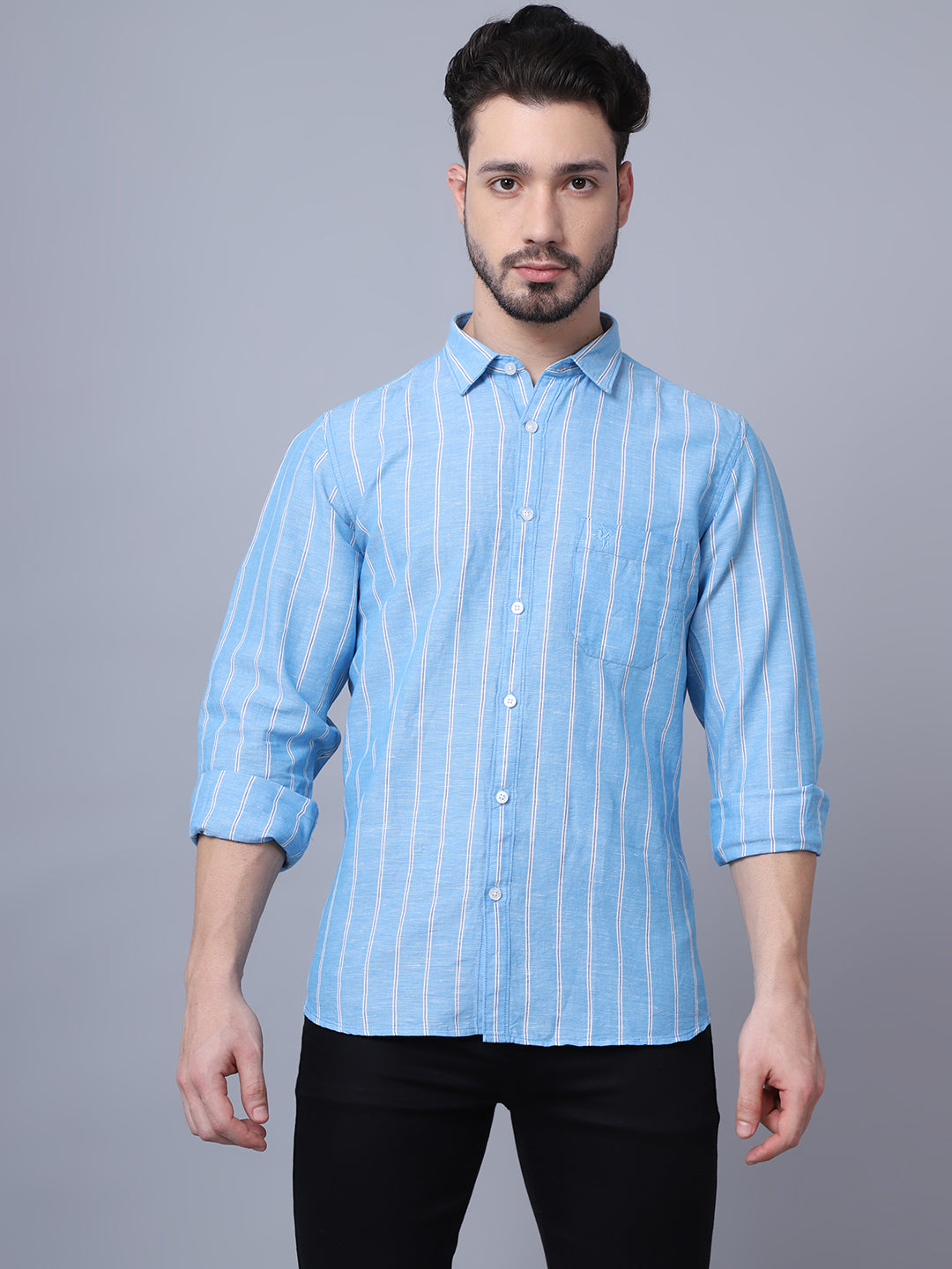 Casual Shirt for Men | Breathable & Soft with Color Fastness Regular Fit Spread Collar Neck Cotton Fabric Striped Pattern