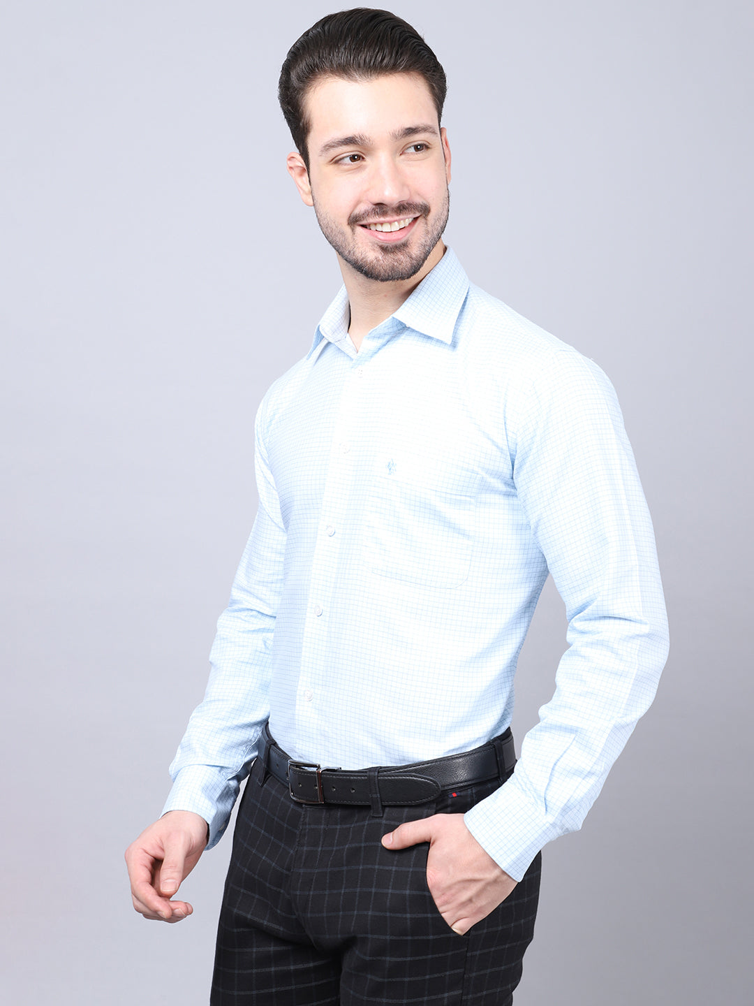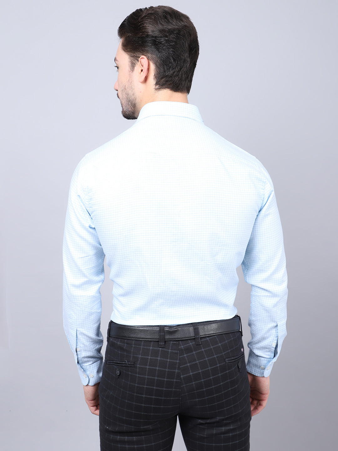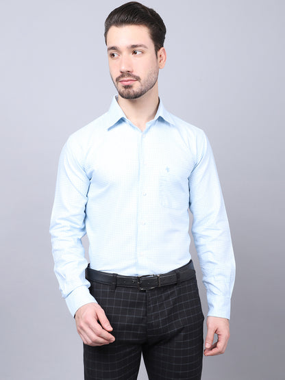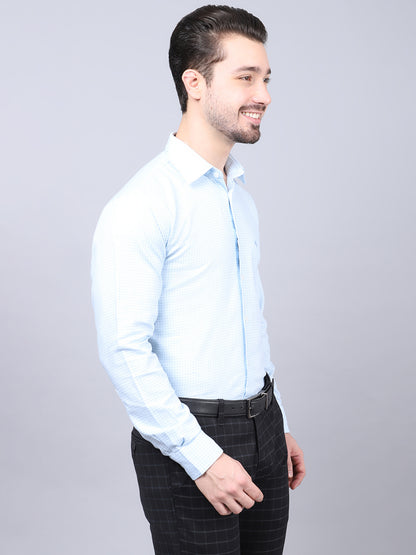 Men's Sky Blue Formal Small Checks Full Sleeve Shirt