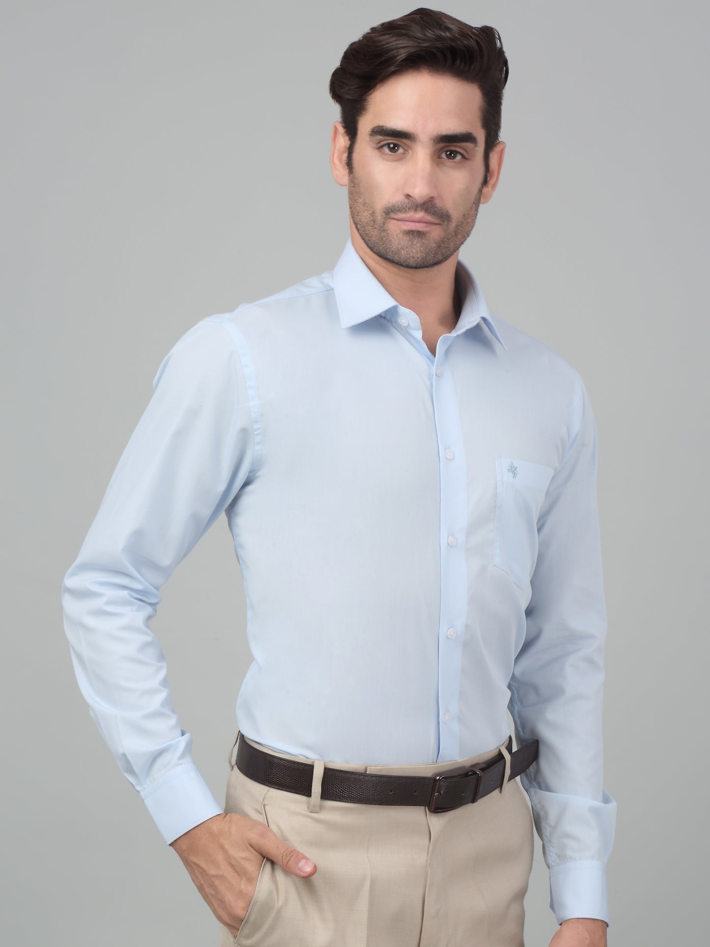 Men's Sky Blue Formal Plain Full Sleeve Shirt