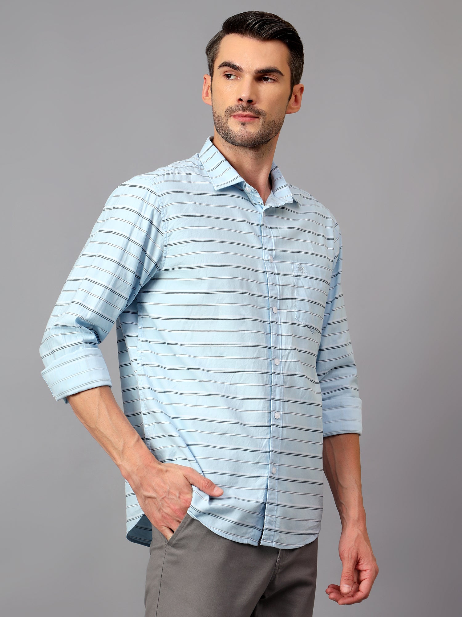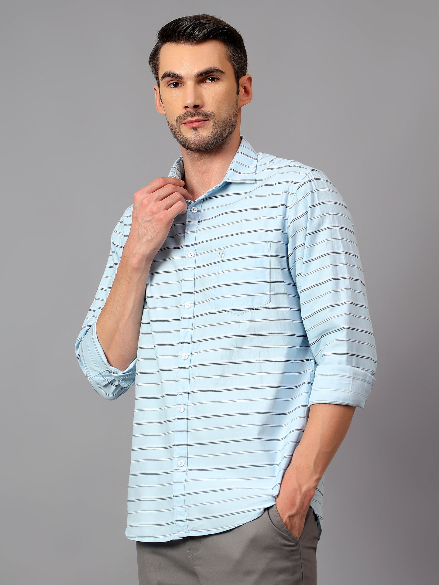 Casual Shirt for Men | Breathable & Soft with Color Fastness Regular Fit Spread Collar Neck Cotton Fabric Striped Pattern