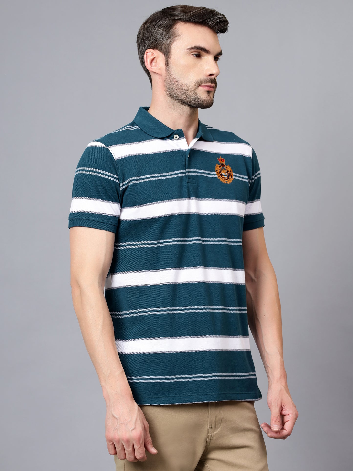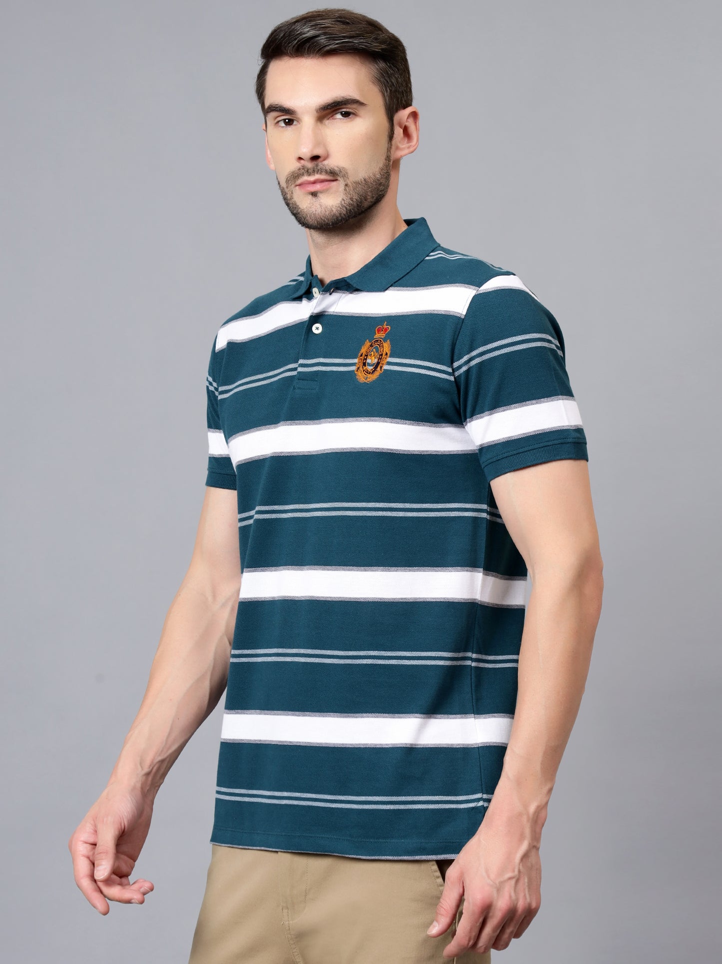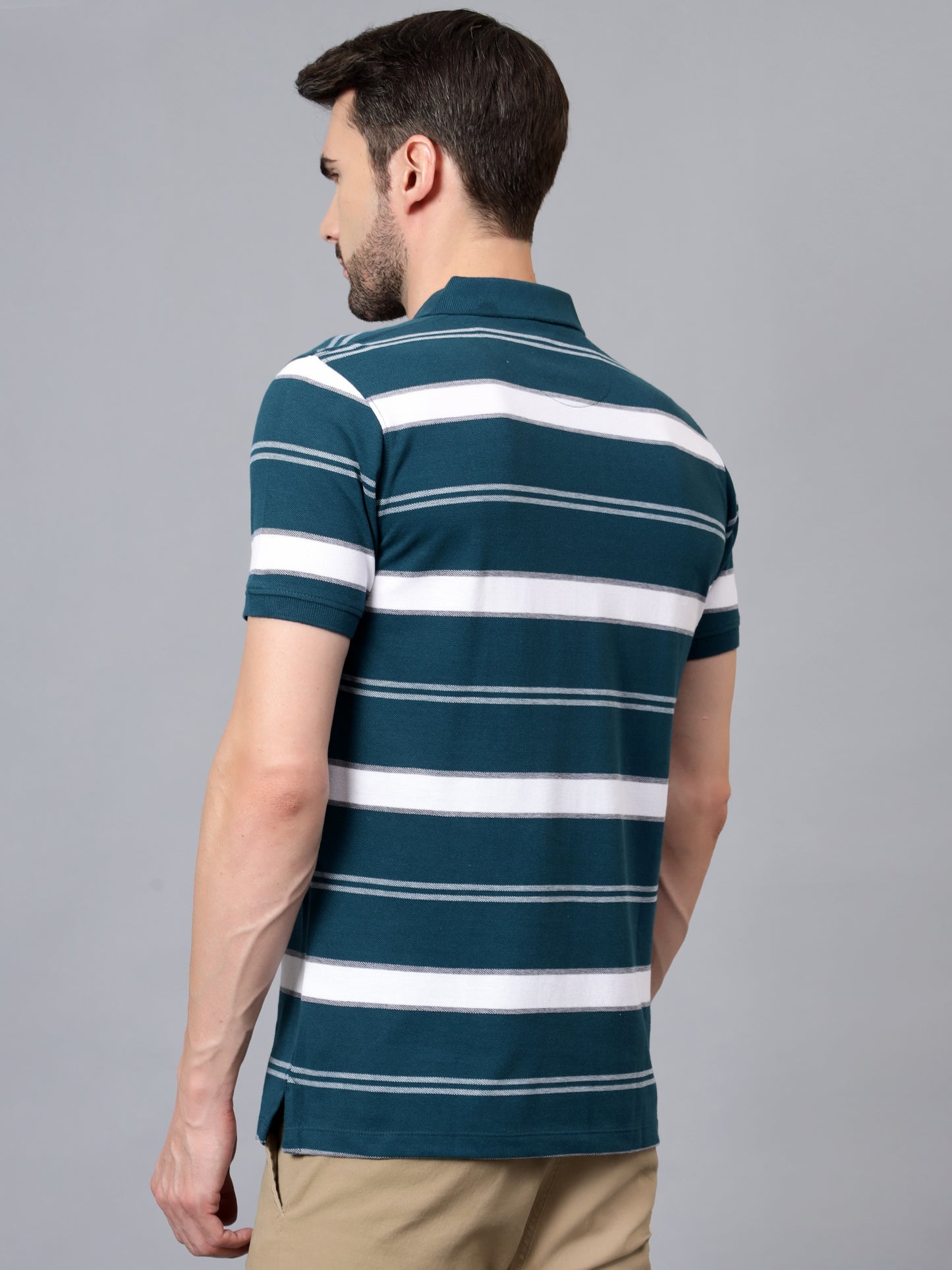 T-Shirt for Men | Breathable & Soft with Color Fastness Regular Fit Polo Neck Poly Cotton Fabric Striped Pattern