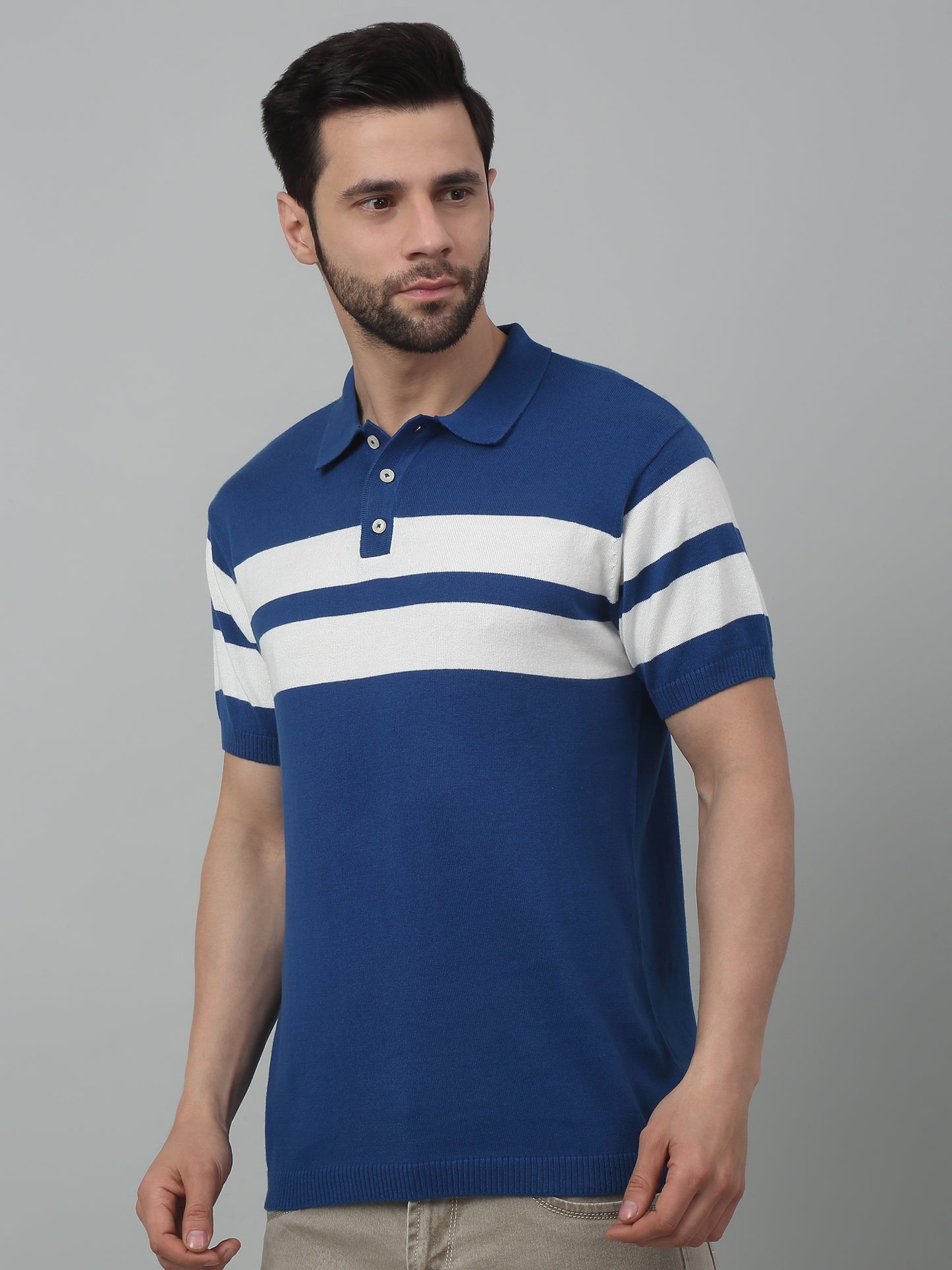 T-Shirt for Men | Breathable & Soft with Color Fastness Regular Fit Polo Neck Cotton Fabric Striped Pattern