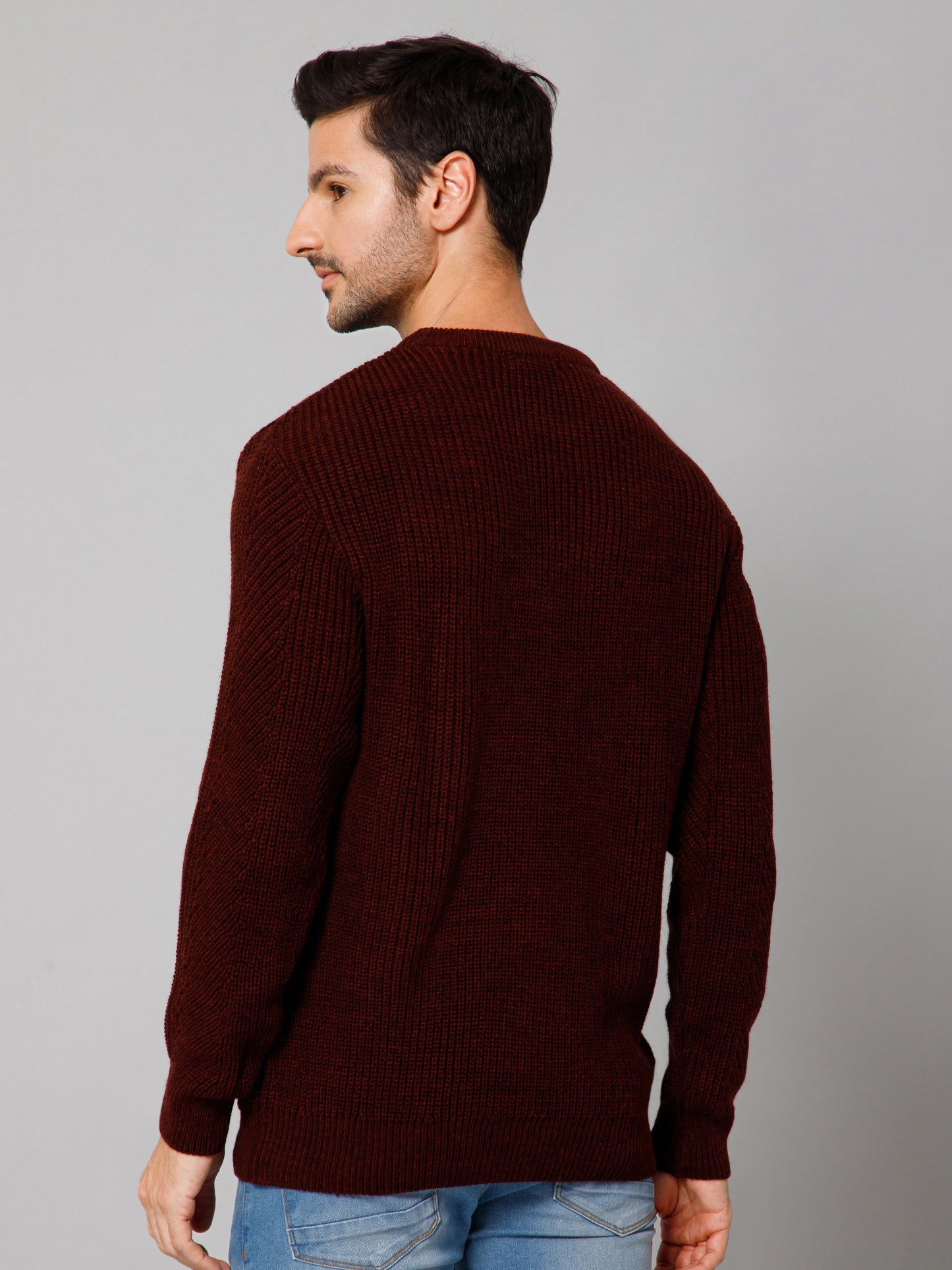 Self Design Rust Full Sleeves Round Neck Regular Fit Casual Sweater for Men