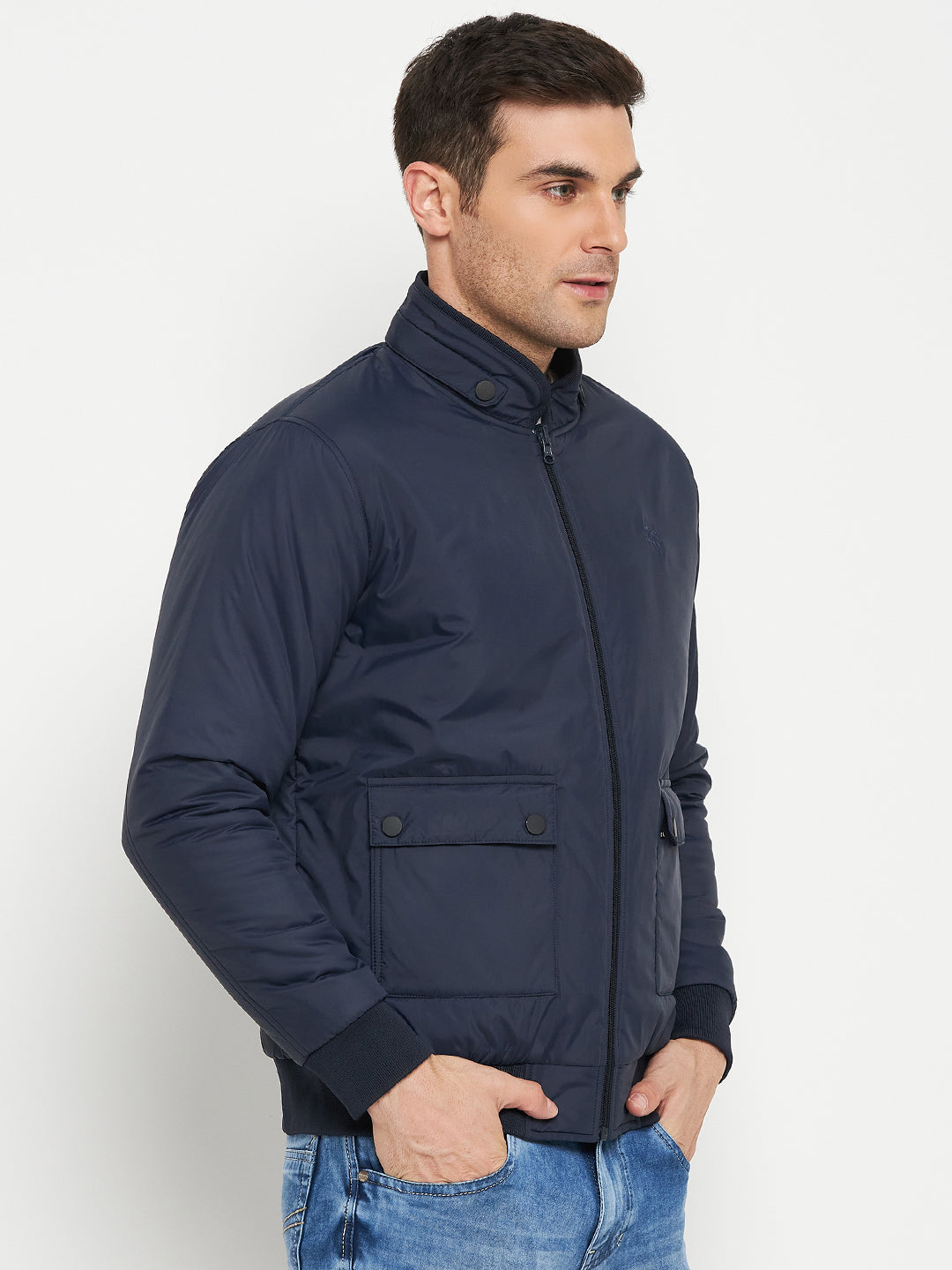 Solid Blue and olive Full Sleeves Mock Collar Regular Fit Reversible Casual Jacket for Men
