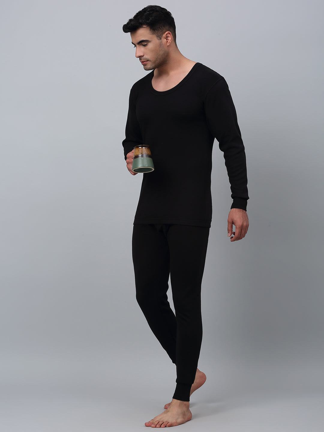 Solid Non Pleated Regular Fit Mid Rise Black Thermal Bottom For Men