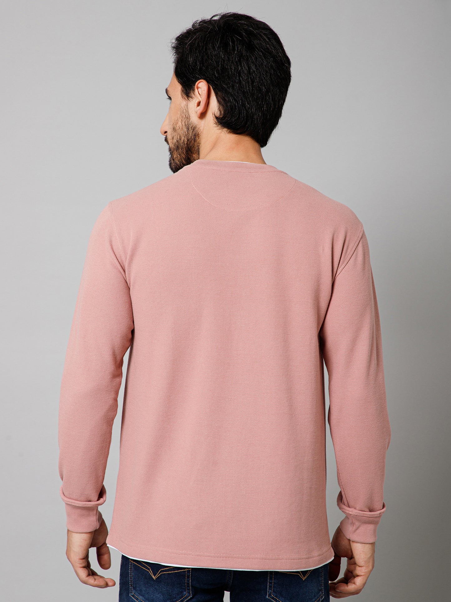 Solid Pink Full Sleeves Round Neck Regular Fit Casual Sweatshirt for Mens