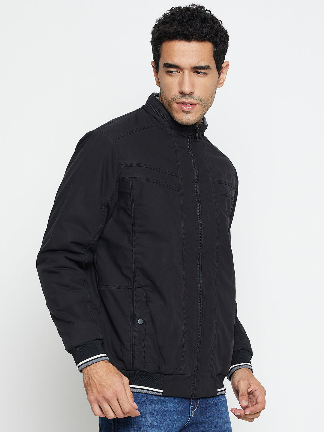 Solid Black Full Sleeves Mock Collar Regular Fit Casual Jacket for Men