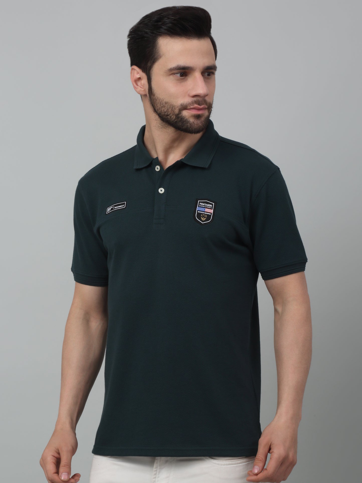 T-Shirt for Men | Breathable & Soft with Color Fastness Regular Fit Polo Neck Poly Cotton Fabric Self Design Pattern