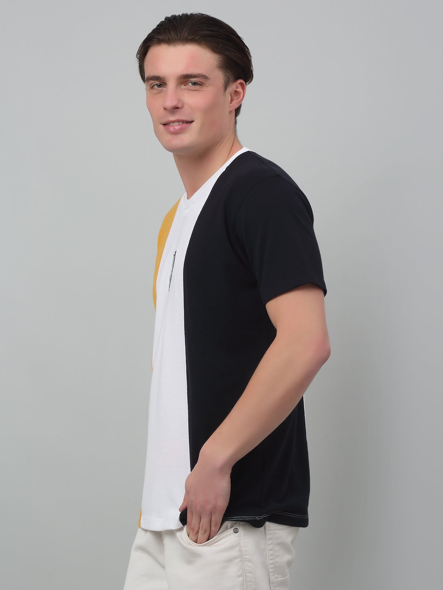 T-Shirt for Men | Breathable & Soft with Color Fastness Regular Fit Round Neck Poly Cotton Fabric Colour Block Pattern