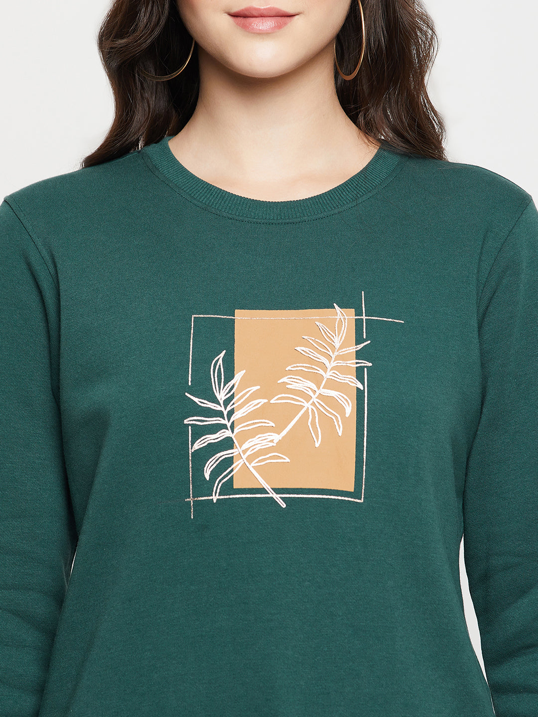 Women's Casual Bottle Green Regular Full Sleeve Pullover Sweatshirt