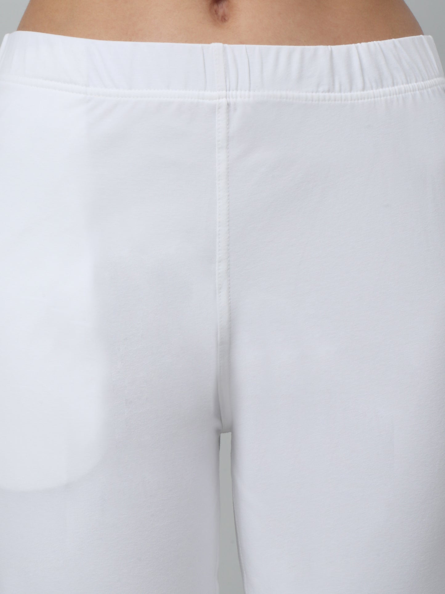 Women's Basic Regular Fit White Flat Front Mid rise Kurti Pant