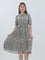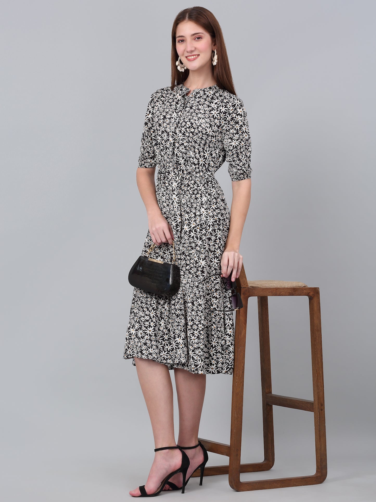 Women's Casual Round neck Black Floral Print Fit & Flared Dress