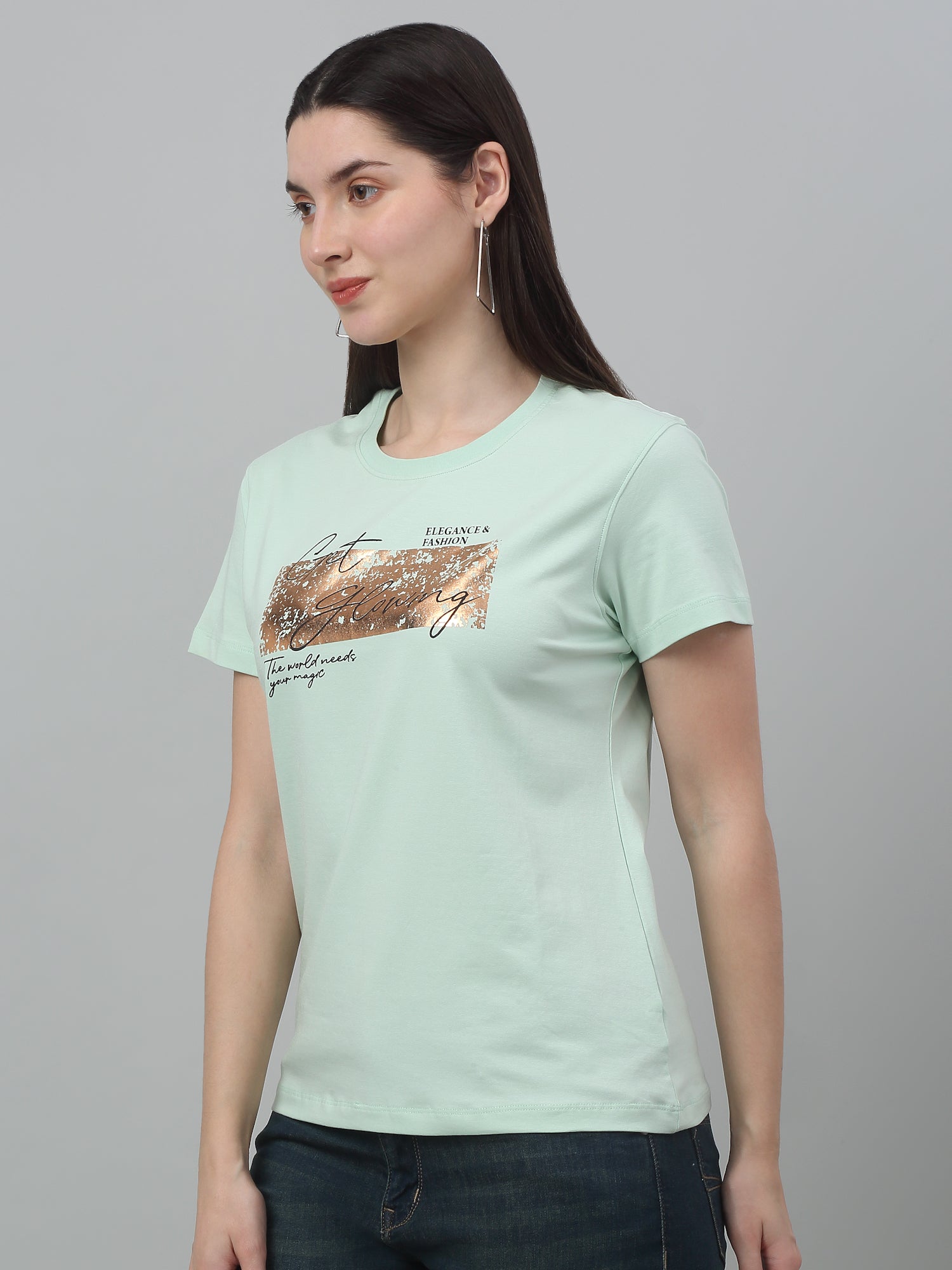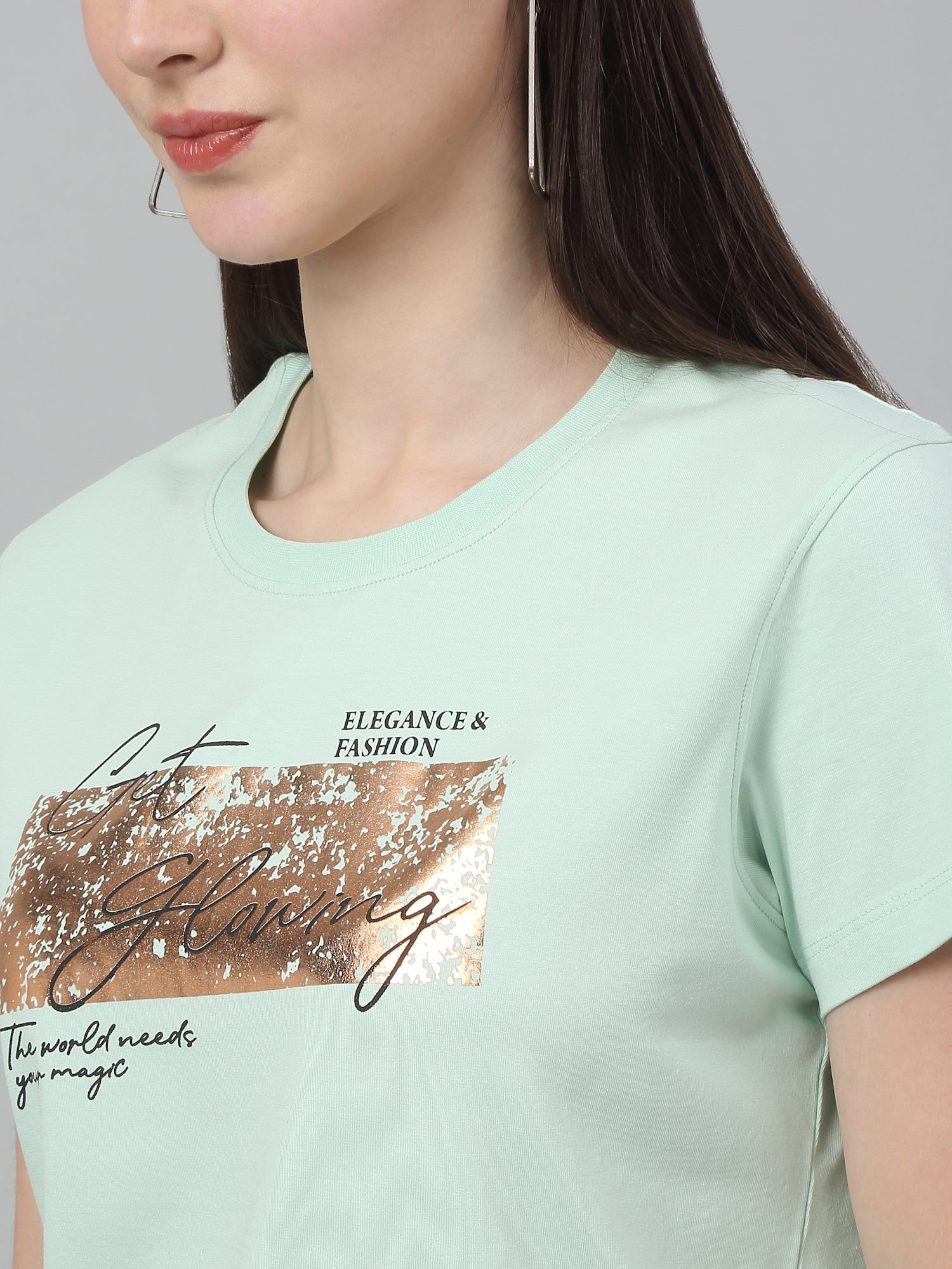 Women's Casual Regular Short Sleeve Green Round neck Typographic Print T-Shirt