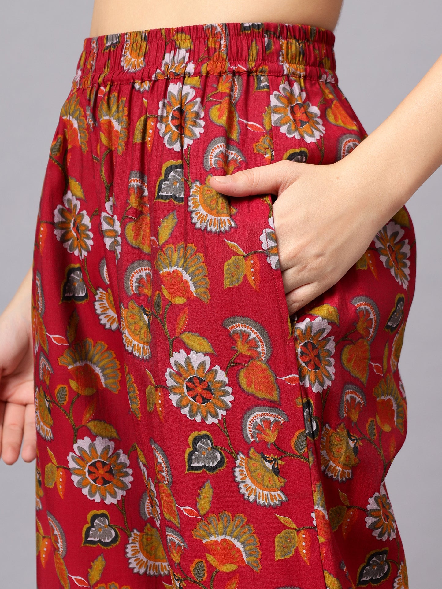 Women's Pink Floral Printed Casual Kurta Plazzo Set