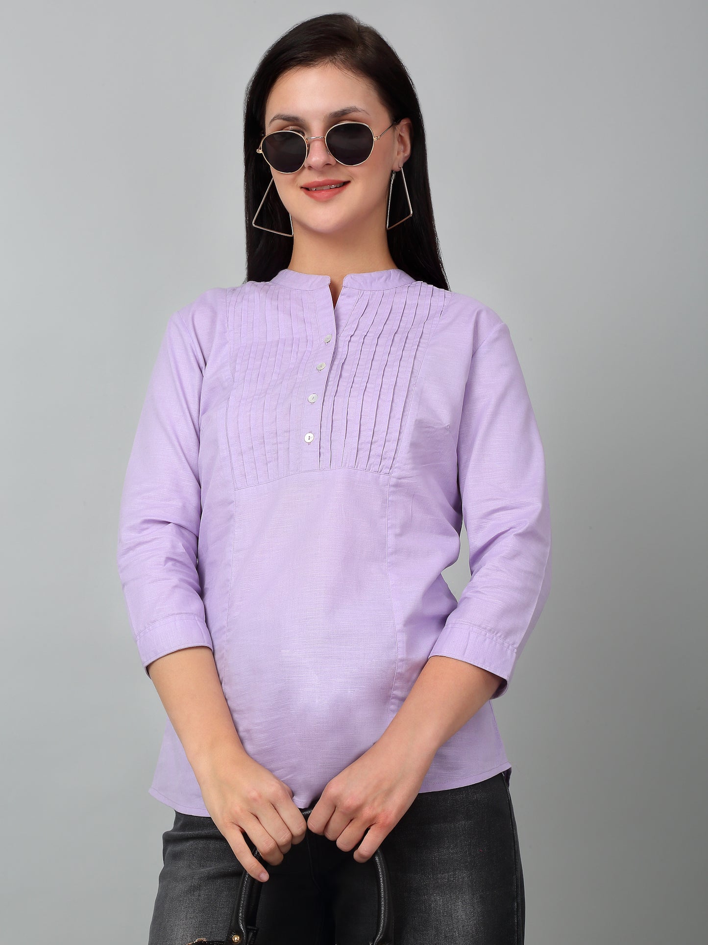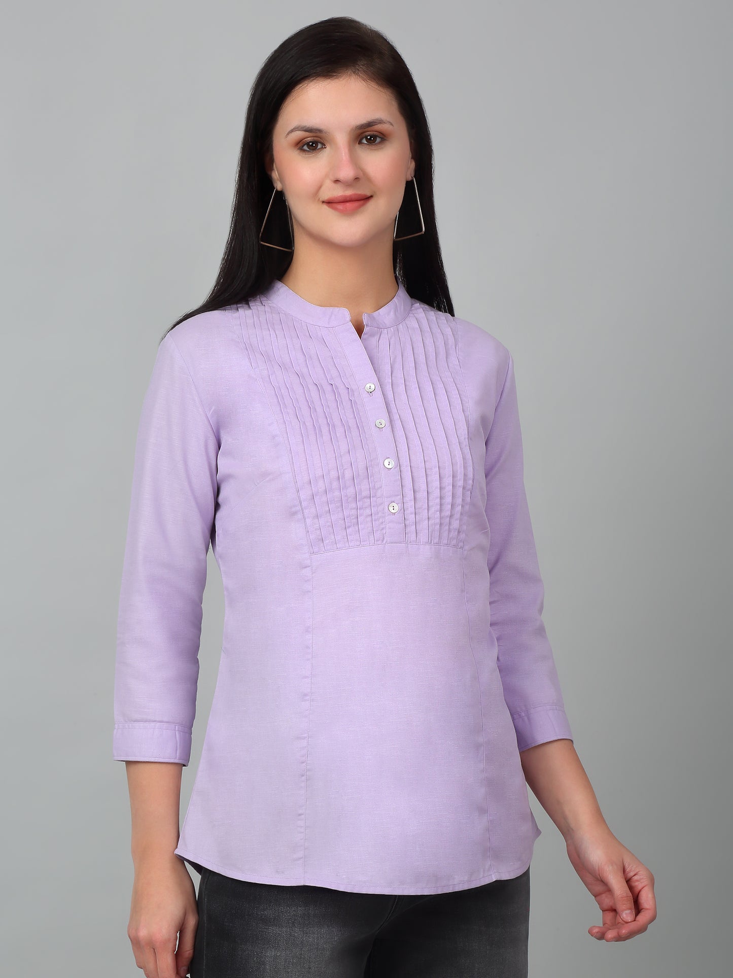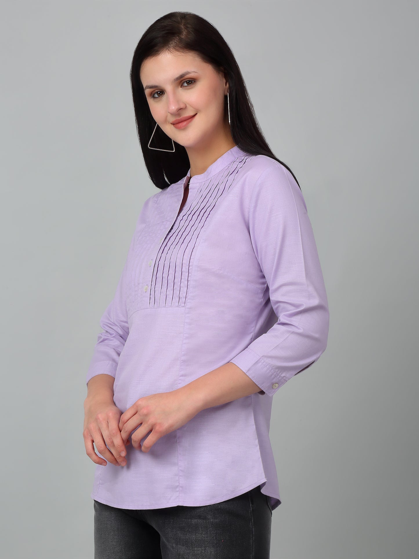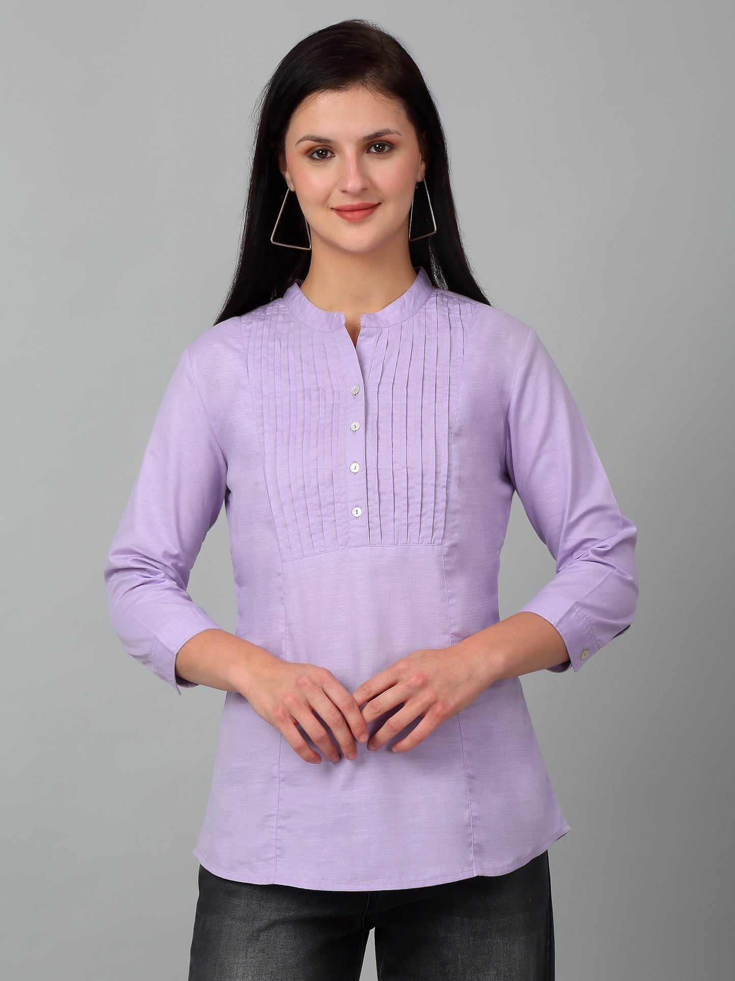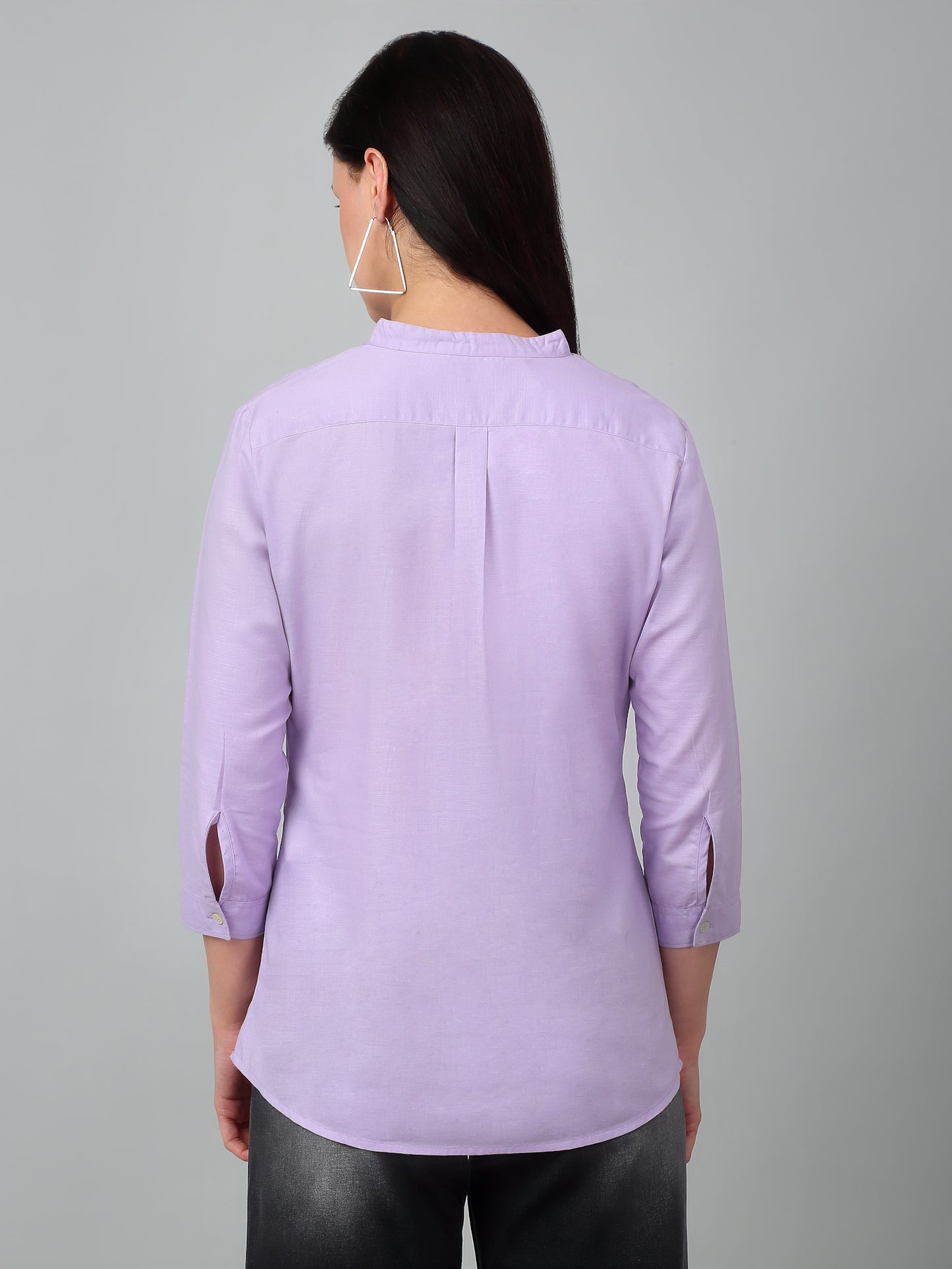 Women's Casual Lilac Solid Mandarin Collar Tunic