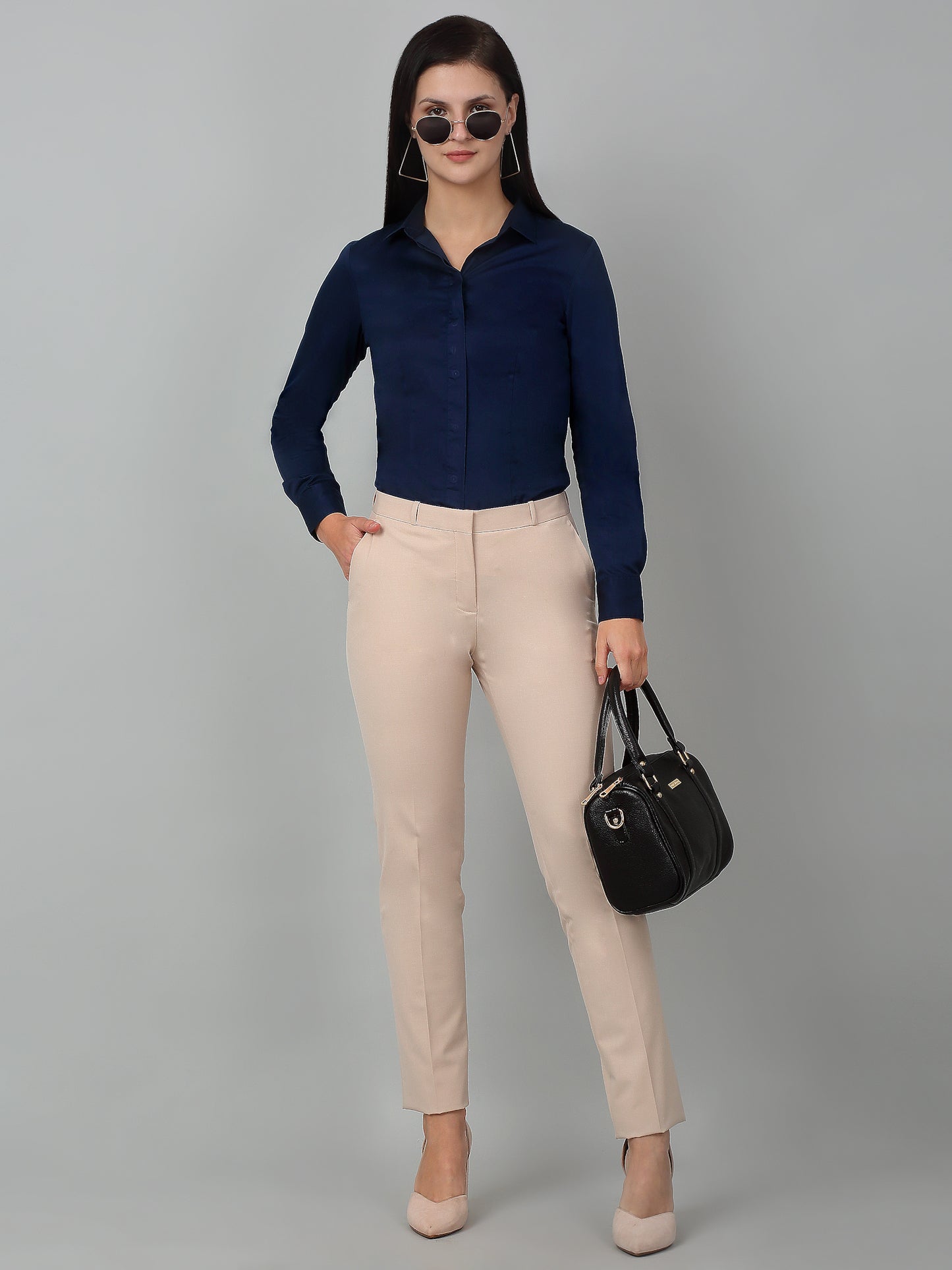 Women's Formal Slim Fit Blue Regular Full Sleeve Shirt