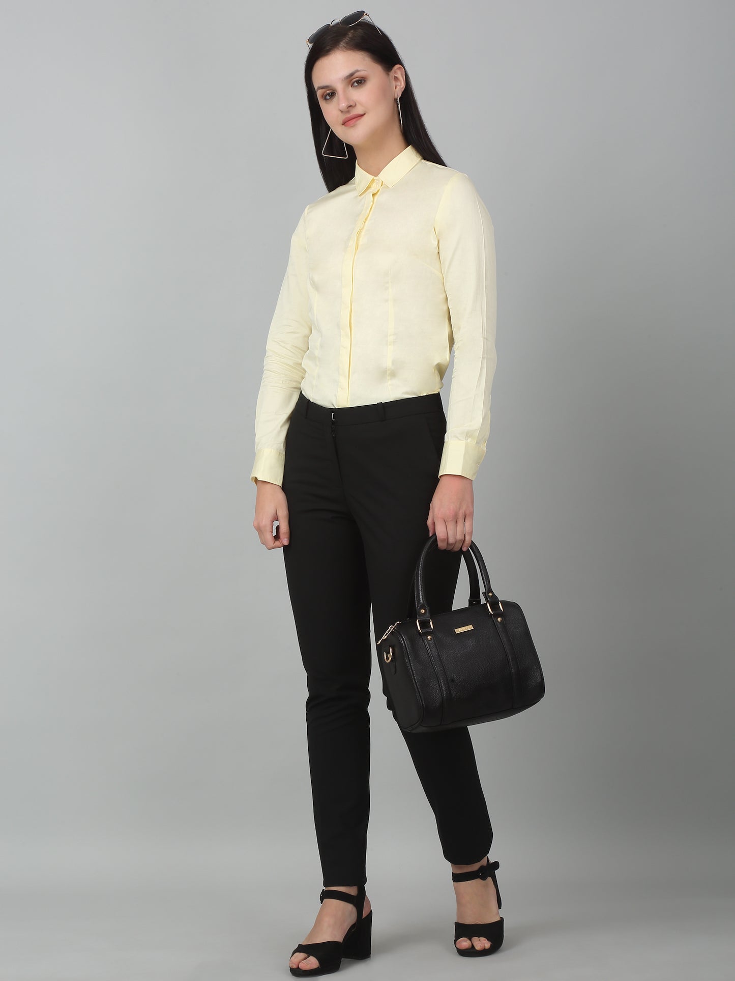 Women's Formal Slim Fit Lemon Regular Full Sleeve Shirt