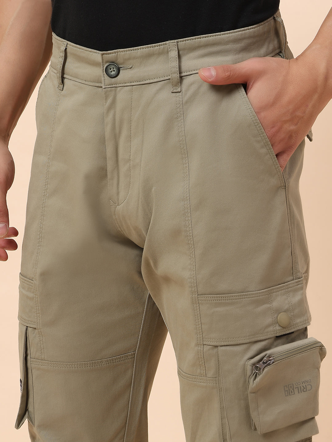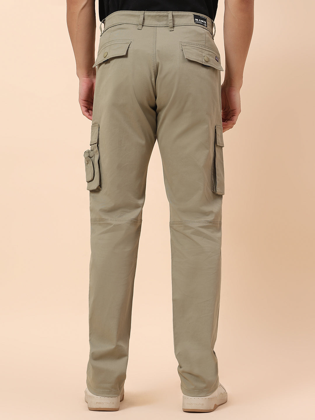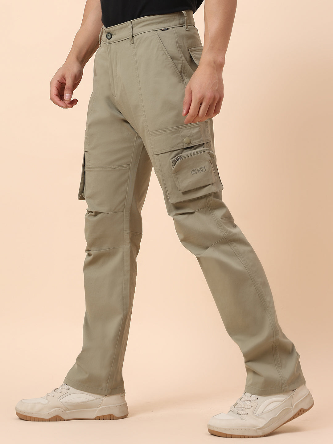 Cargo for Men | Breathable & Soft with Color Fastness Straight Fit Cotton Blend Fabric Solid Pattern Button Closure