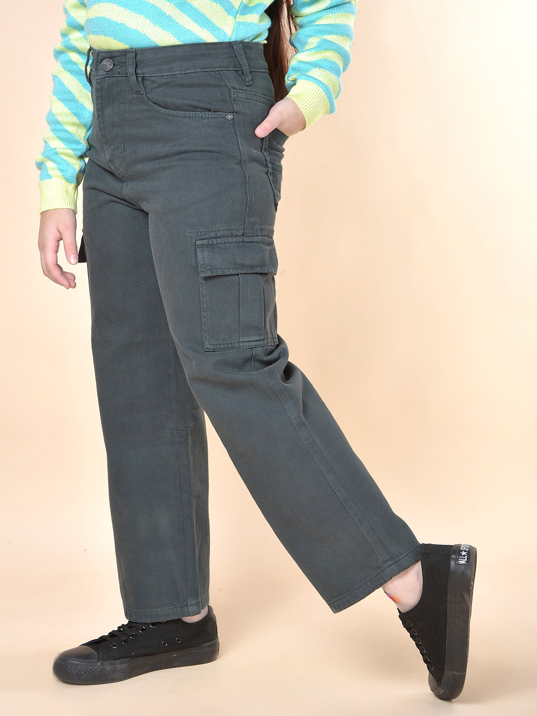 Casual Cargo for Girls | Breathable & Soft with Color Fastness Regular Fit Cotton Fabric Button Closure Solid Pattern