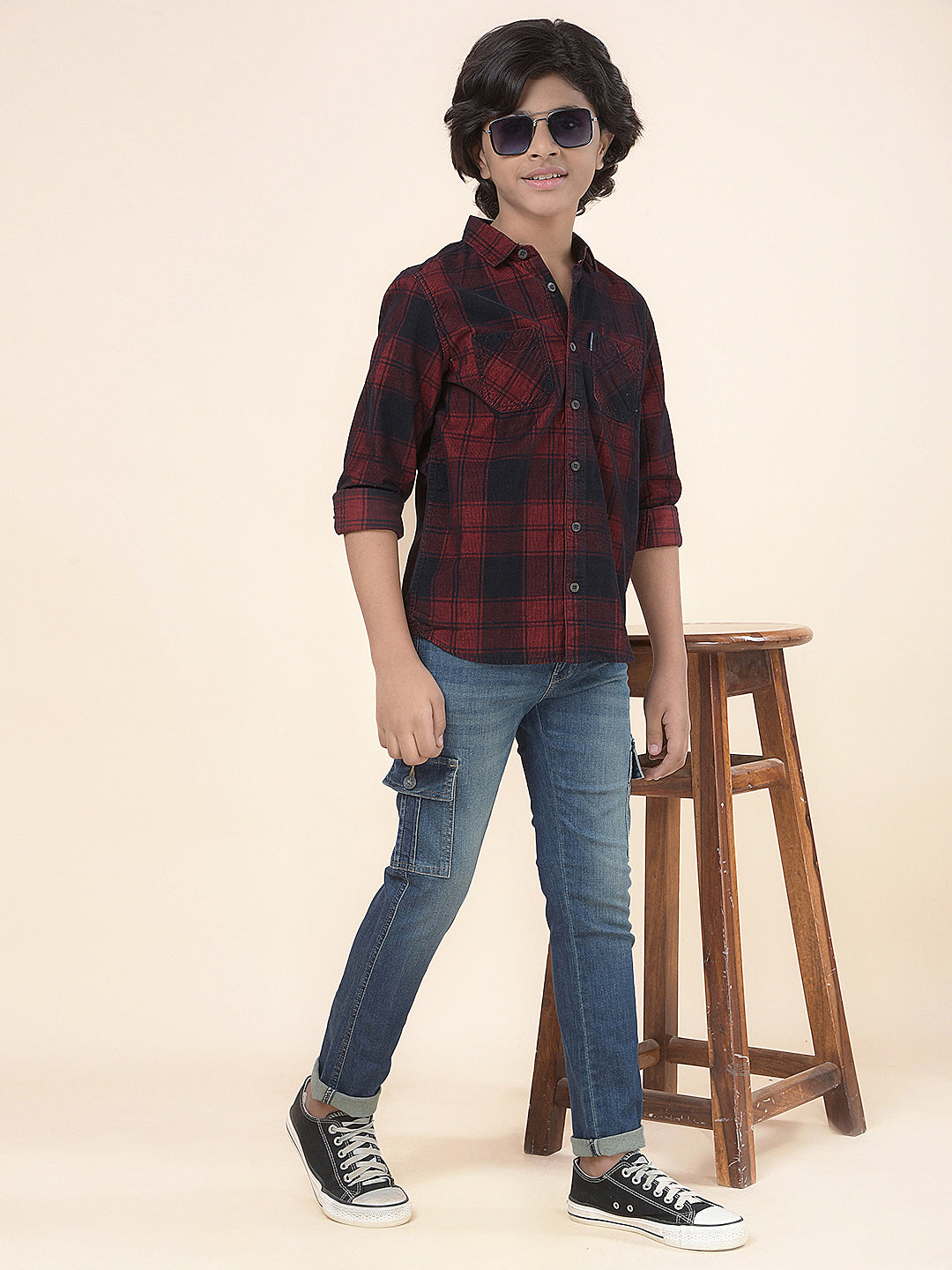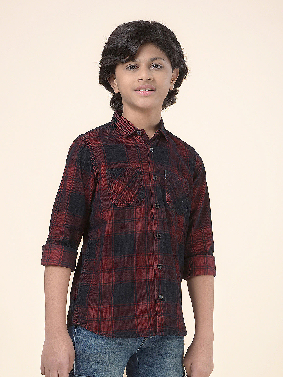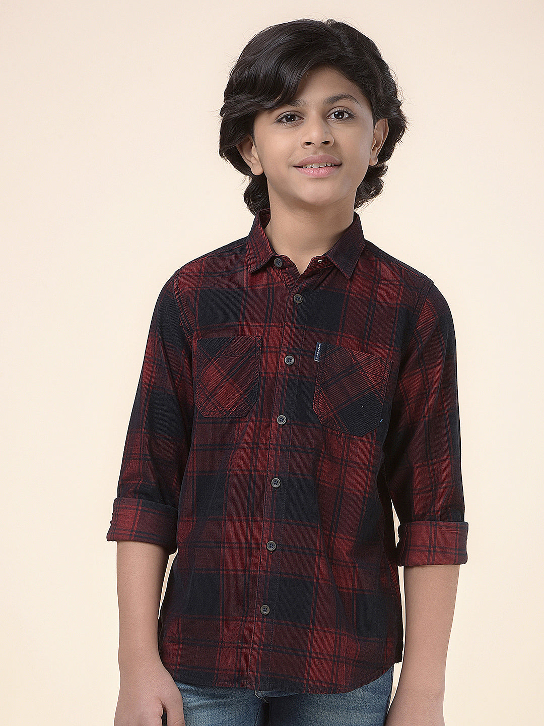 Casual Shirt for Boys l Breathable & Soft with Color Fastness Regular Fit Spread Collar Cotton Fabric Checkered Pattern