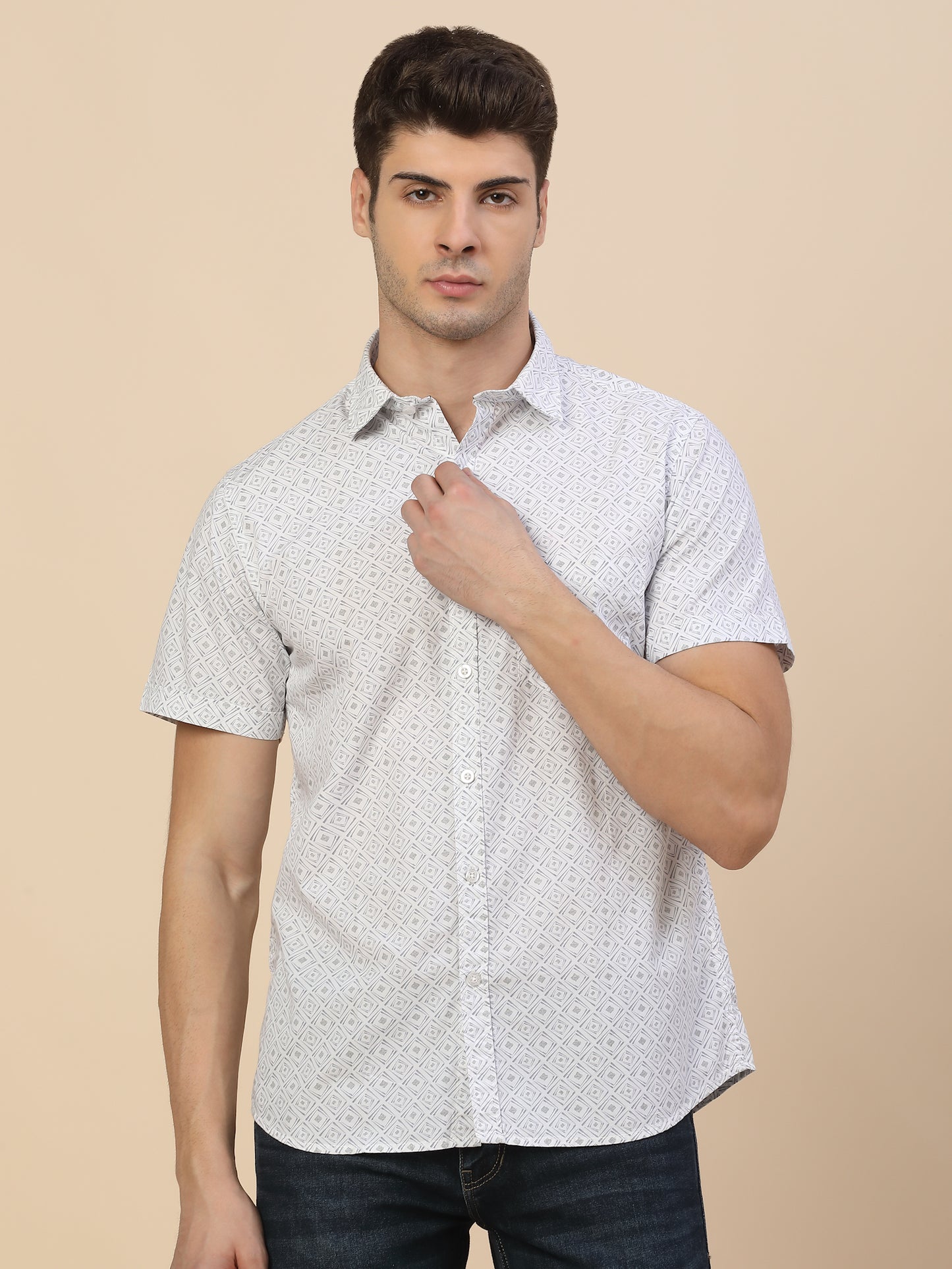 Casual Shirt for Men | Breathable & Soft with Color Fastness Regular Fit Spread Collar Neck Cotton Fabric Printed Pattern