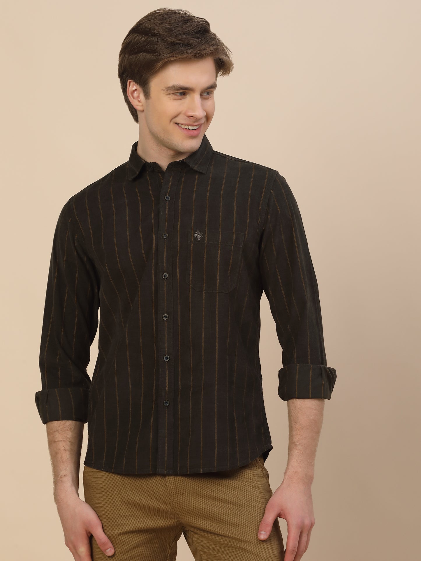 Casual Shirt for Men | Breathable & Soft with Color Fastness Regular Fit Spread Collar Neck Cotton Fabric Striped Pattern