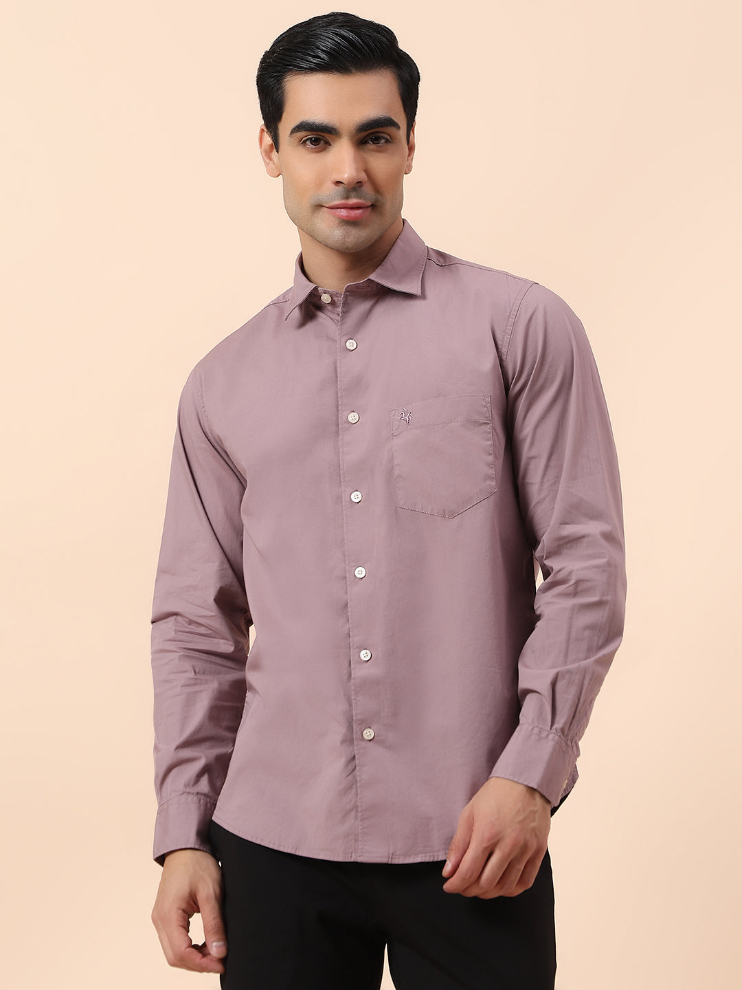 Casual Shirt for Men | Breathable & Soft with Color Fastness Slim Fit Spread Collar Cotton Blend Fabric Solid Pattern