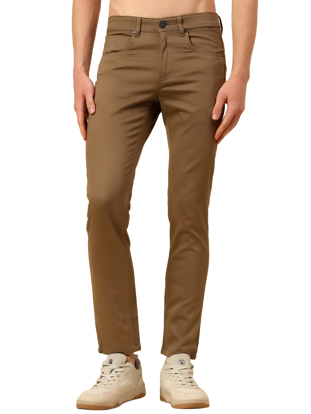 Casual Trouser for Men | Breathable & Soft with Color Fastness Regular Fit Cotton Stretch Fabric Self Design Pattern Button Closure