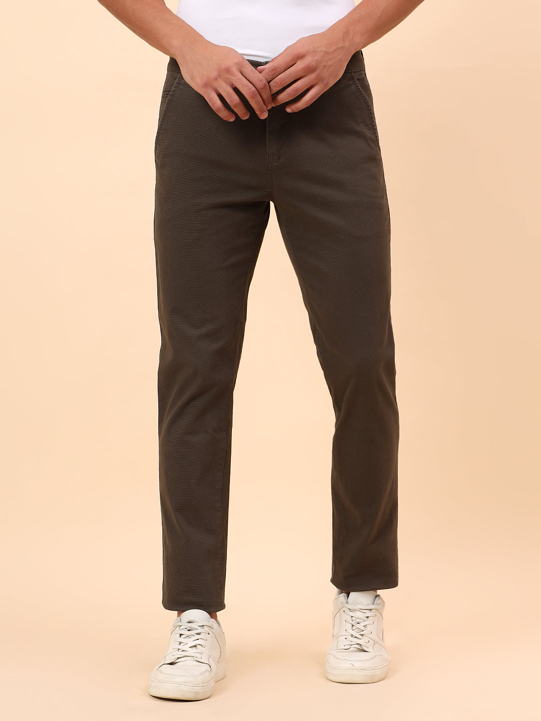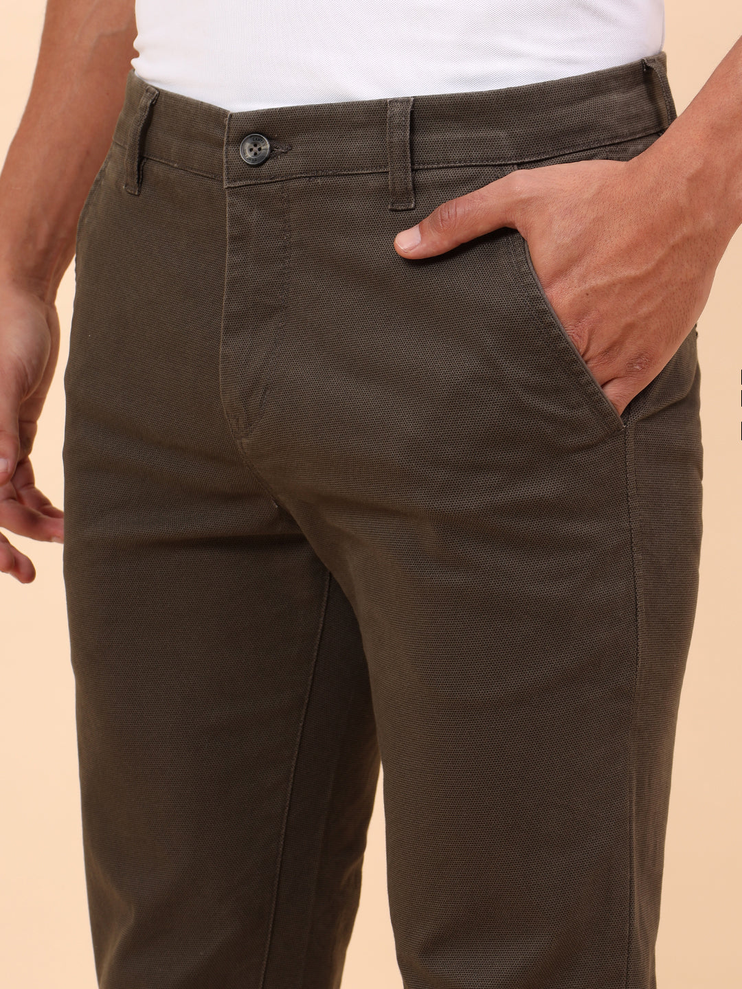 Casual Trousers for Men l Breathable & Soft with Color Fastness Regular Fit Cotton Blend Fabric Self Design Pattern Button Closure