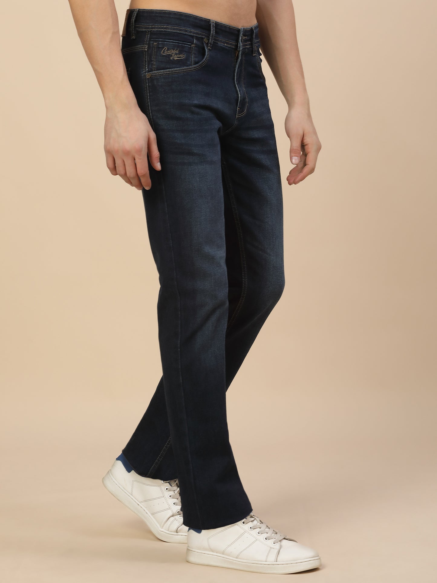 Denim Jeans for Men | Breathable & Soft with Color Fastness Straight Fit Poly Cotton Fabric Solid Pattern Button Closure