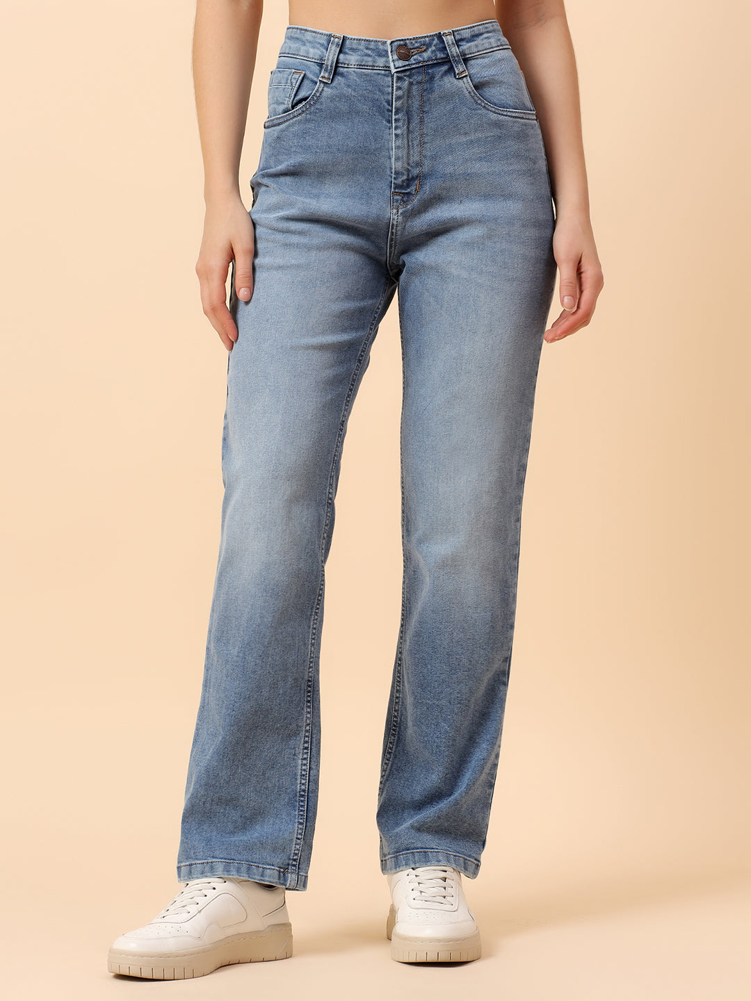 Denim Jeans for Women | Breathable & Soft with Color Fastness Slim Fit Cotton Fabric Solid Pattern Button Closure