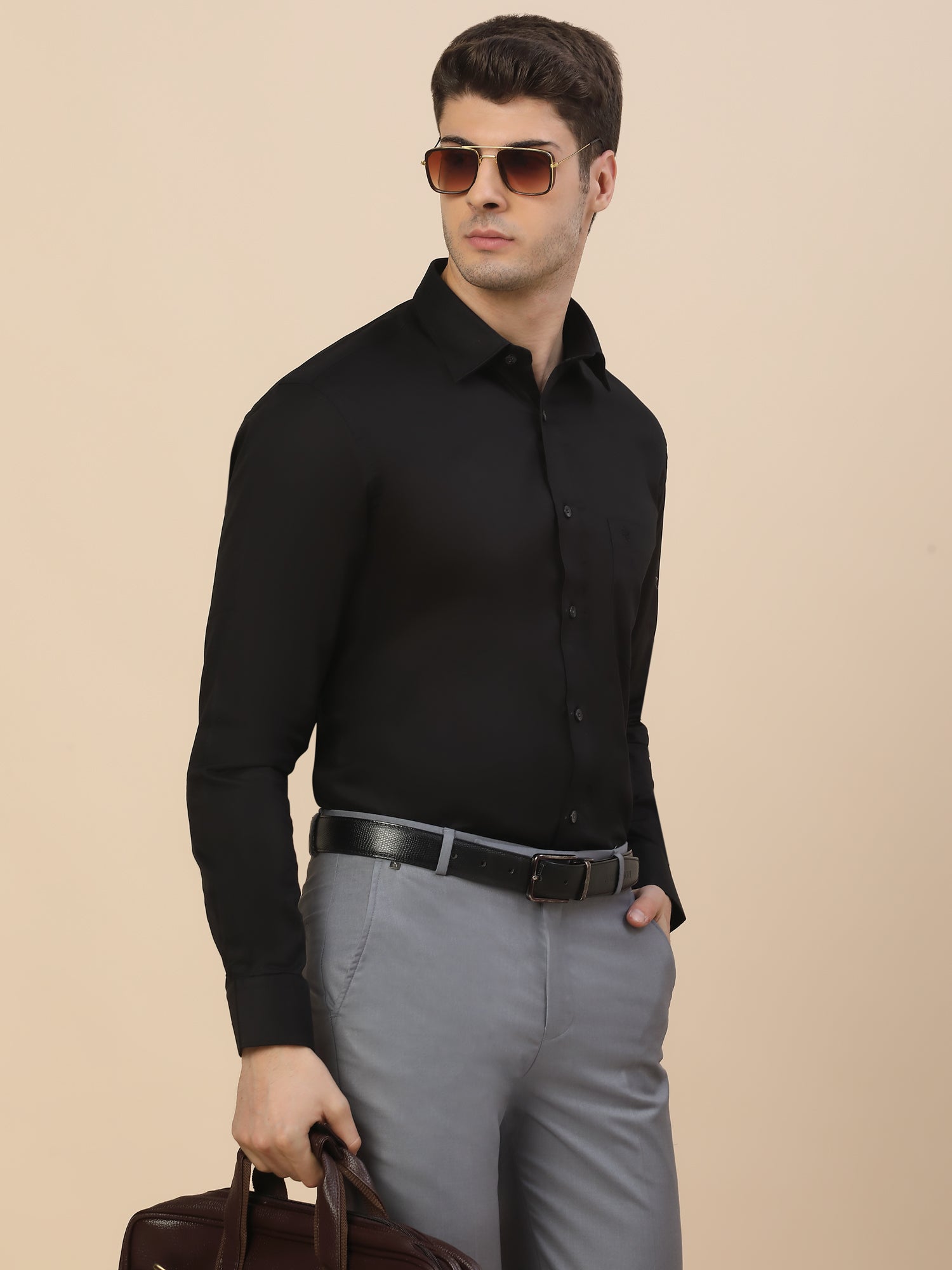 Formal Shirt for Men | Breathable & Soft with Color Fastness Regular Fit Spread Collar Neck Cotton Blend Fabric Solid Pattern