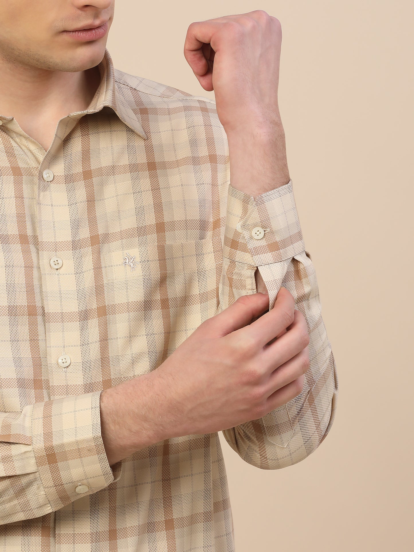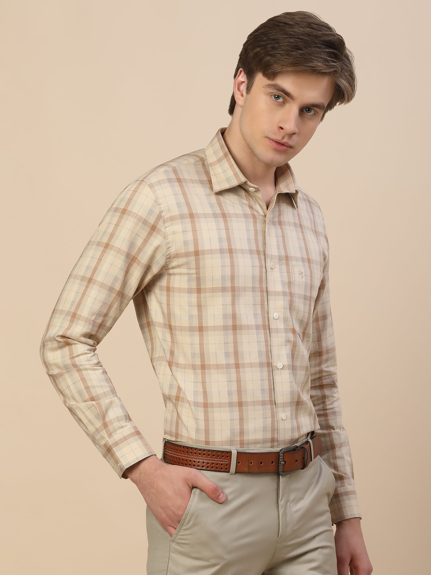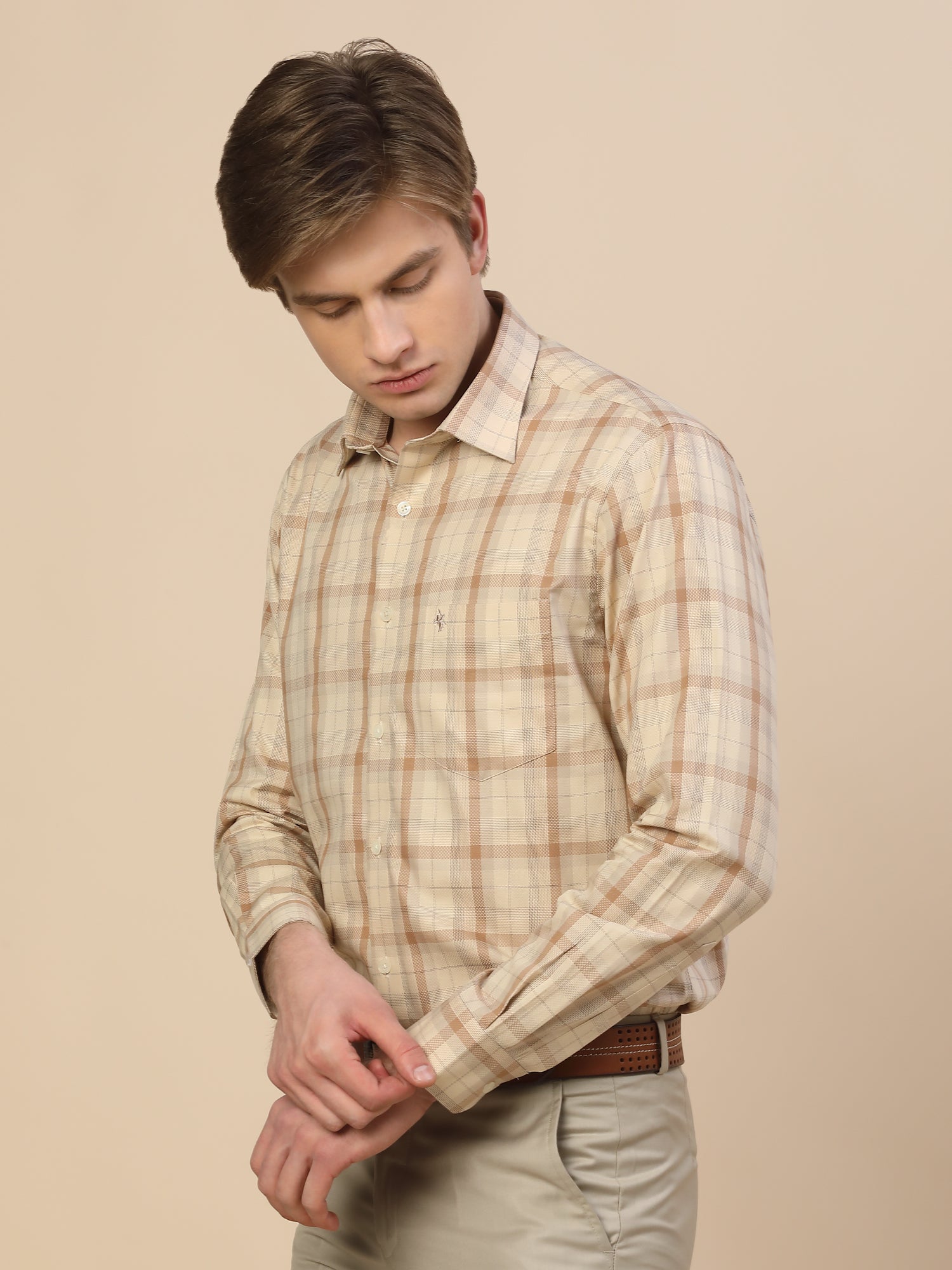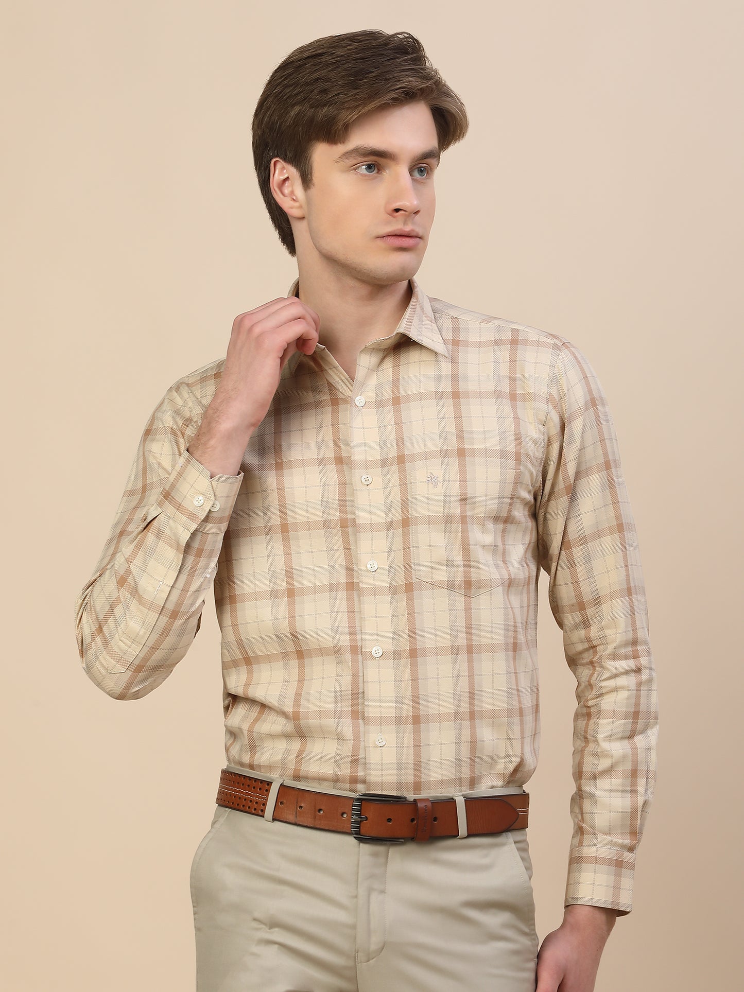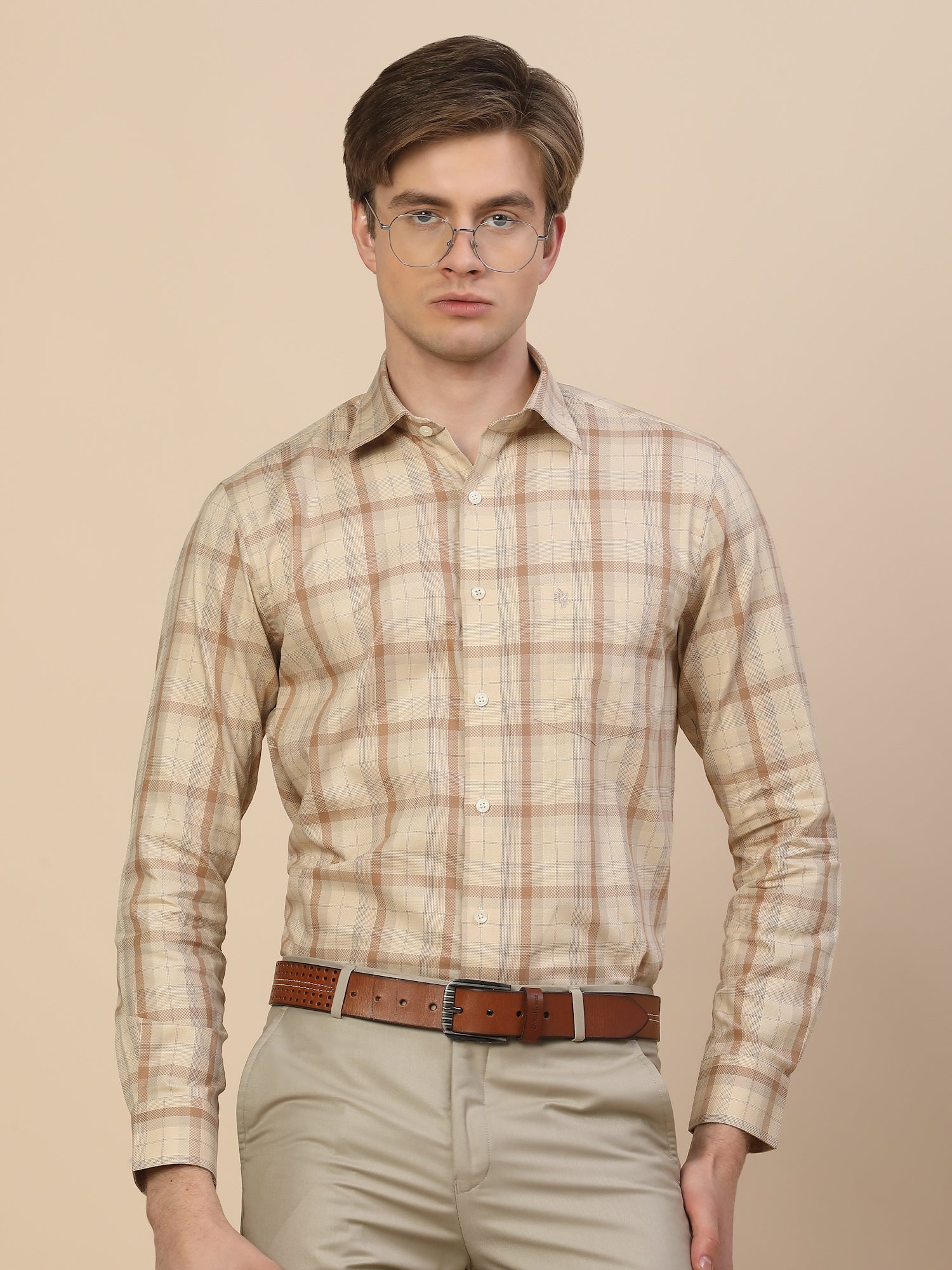 Formal Shirt for Men | Breathable & Soft with Color Fastness Regular Fit Spread Collar Neck Cotton Fabric Check Pattern