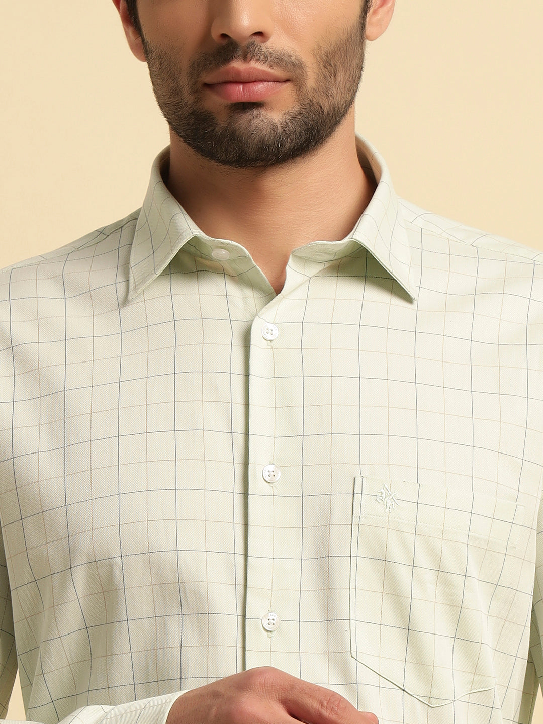 Formal Shirt for Men | Breathable & Soft with Color Fastness Regular Fit Spread Collar Neck Cotton Fabric Checkered Pattern