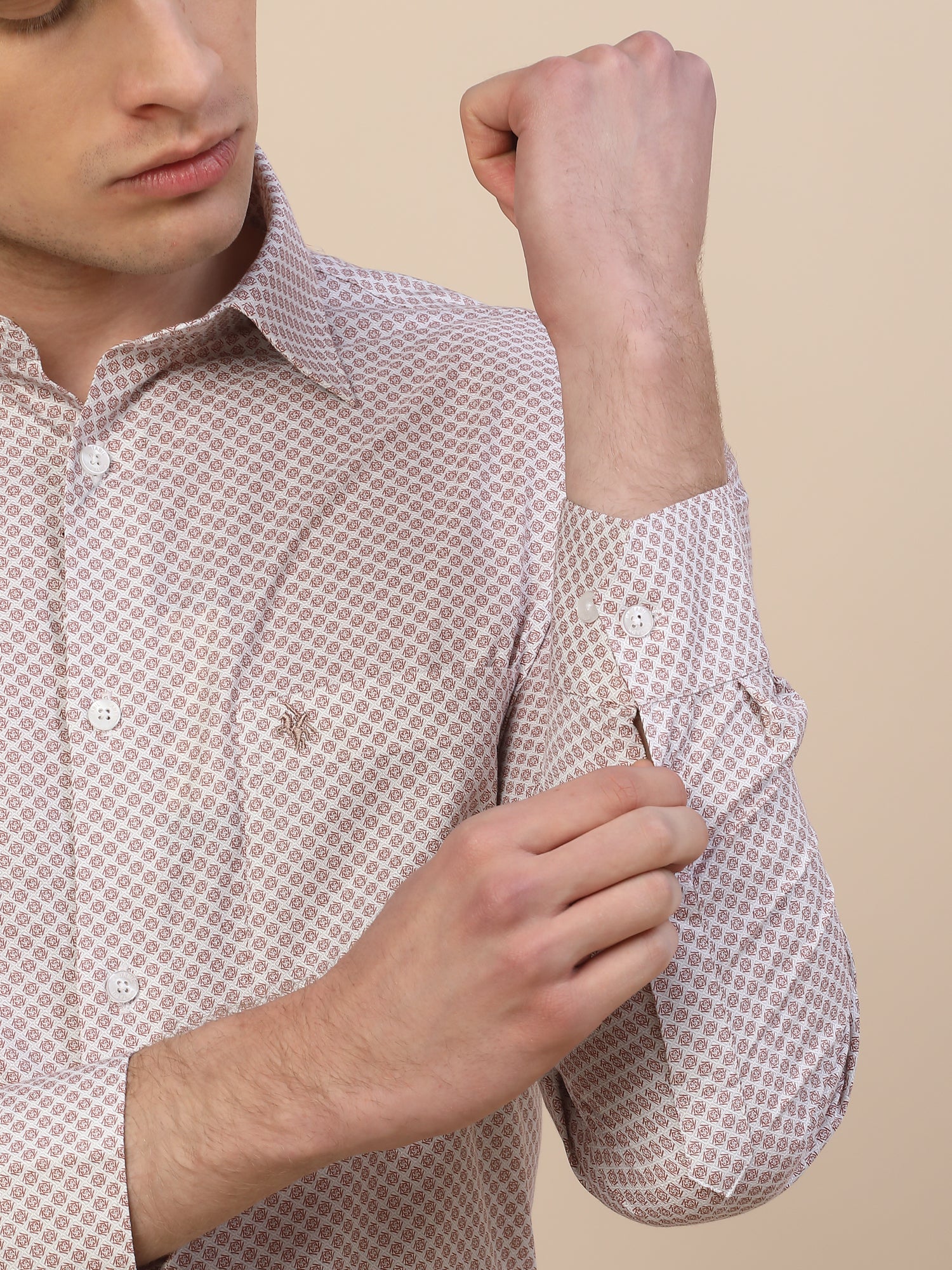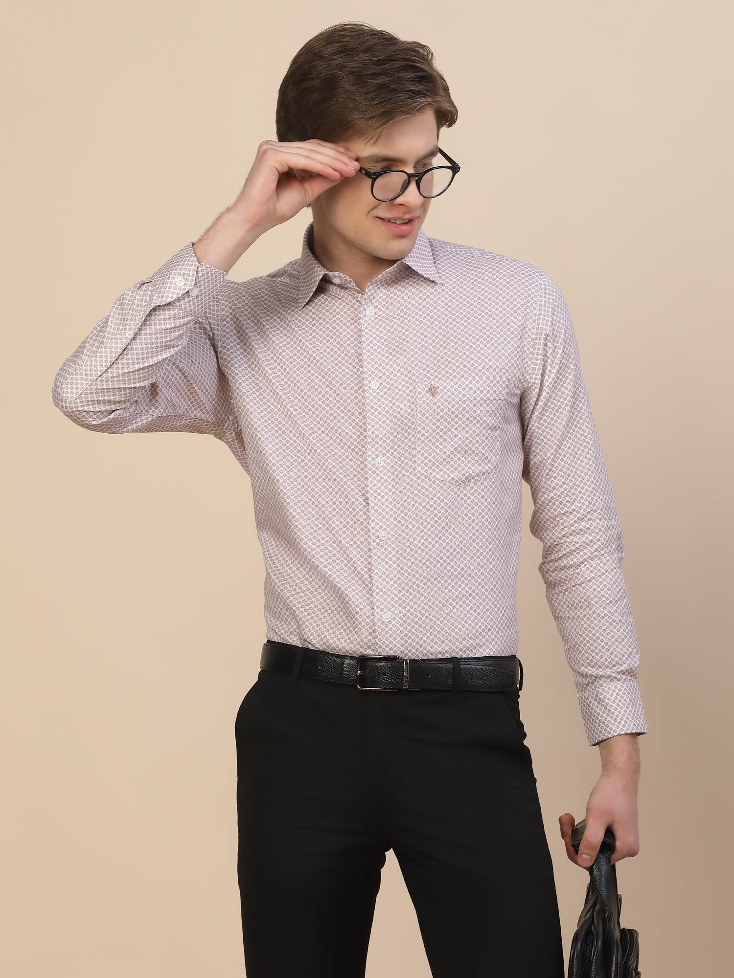 Formal Shirt for Men | Breathable & Soft with Color Fastness Regular Fit Spread Collar Neck Cotton Fabric Printed Pattern