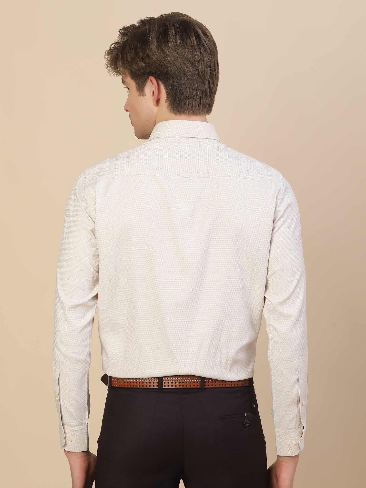 Formal Shirt for Men | Breathable & Soft with Color Fastness Regular Fit Spread Collar Neck Poly Cotton Fabric Self Design Pattern