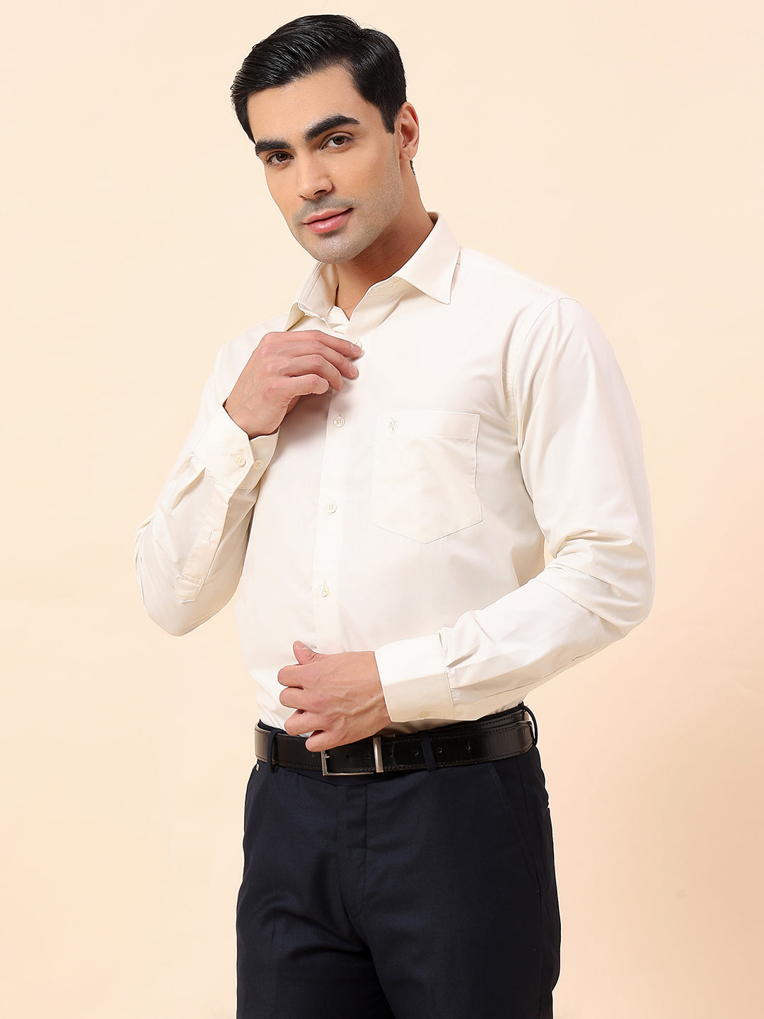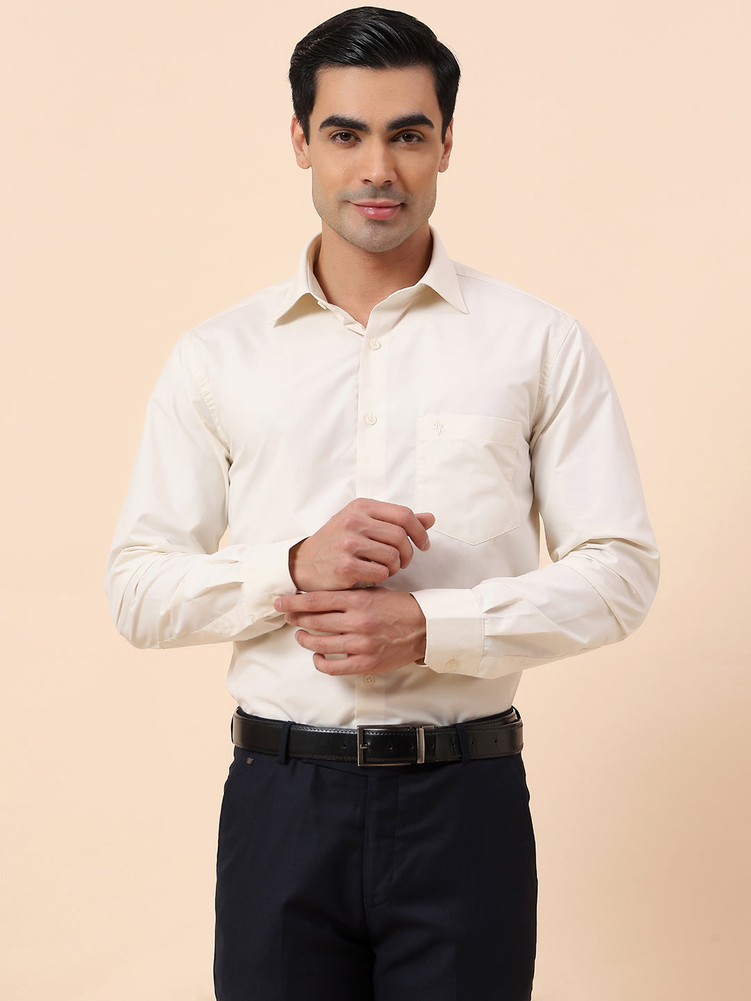 Formal Shirt for Men | Breathable & Soft with Color Fastness Slim Fit Spread Collar Poly Cotton Fabric Solid Pattern