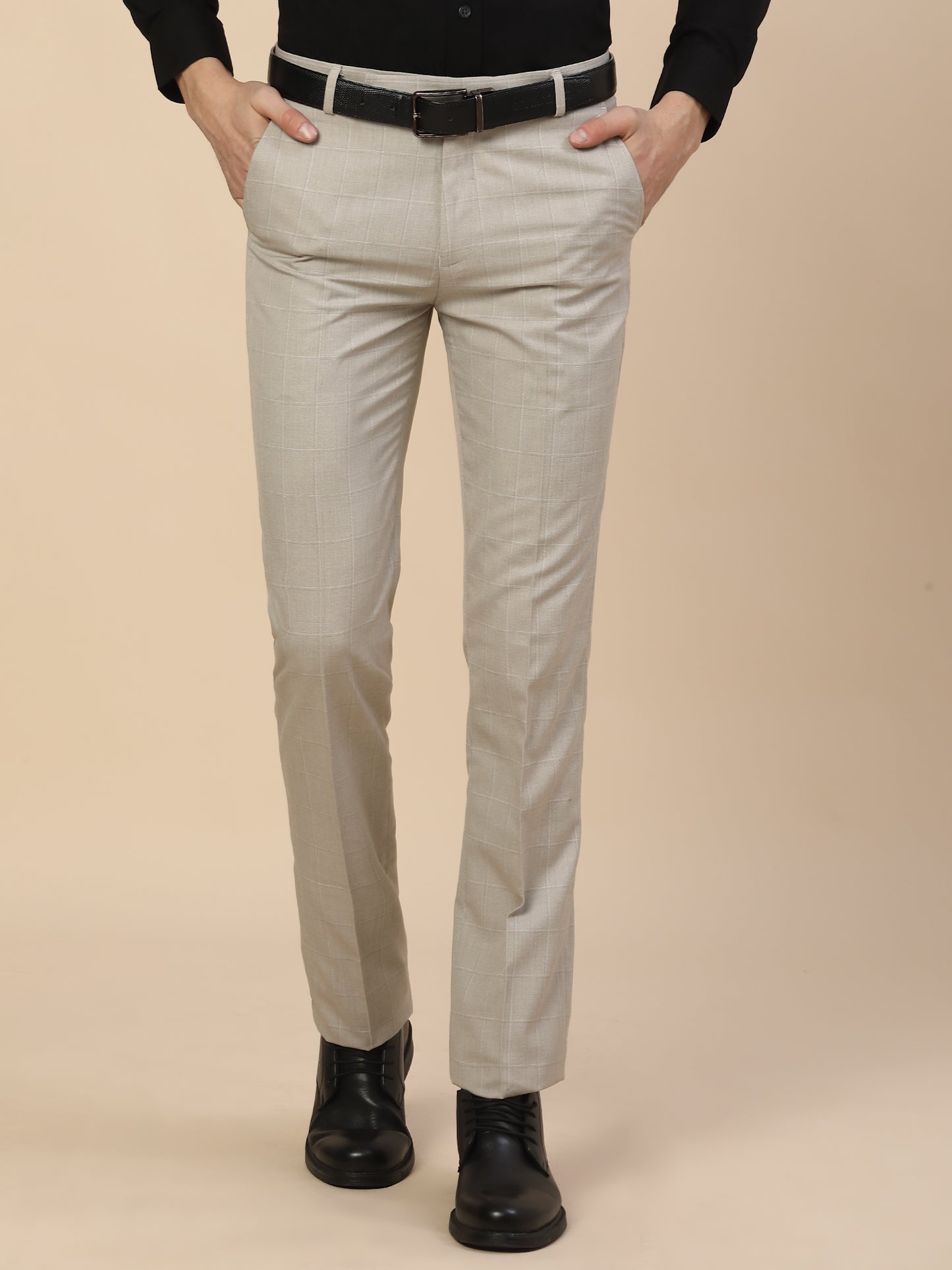 Formal Trouser for Men | Breathable & Soft with Color Fastness Regular Fit Poly Viscose Fabric Check Pattern Hook & Bar Closure