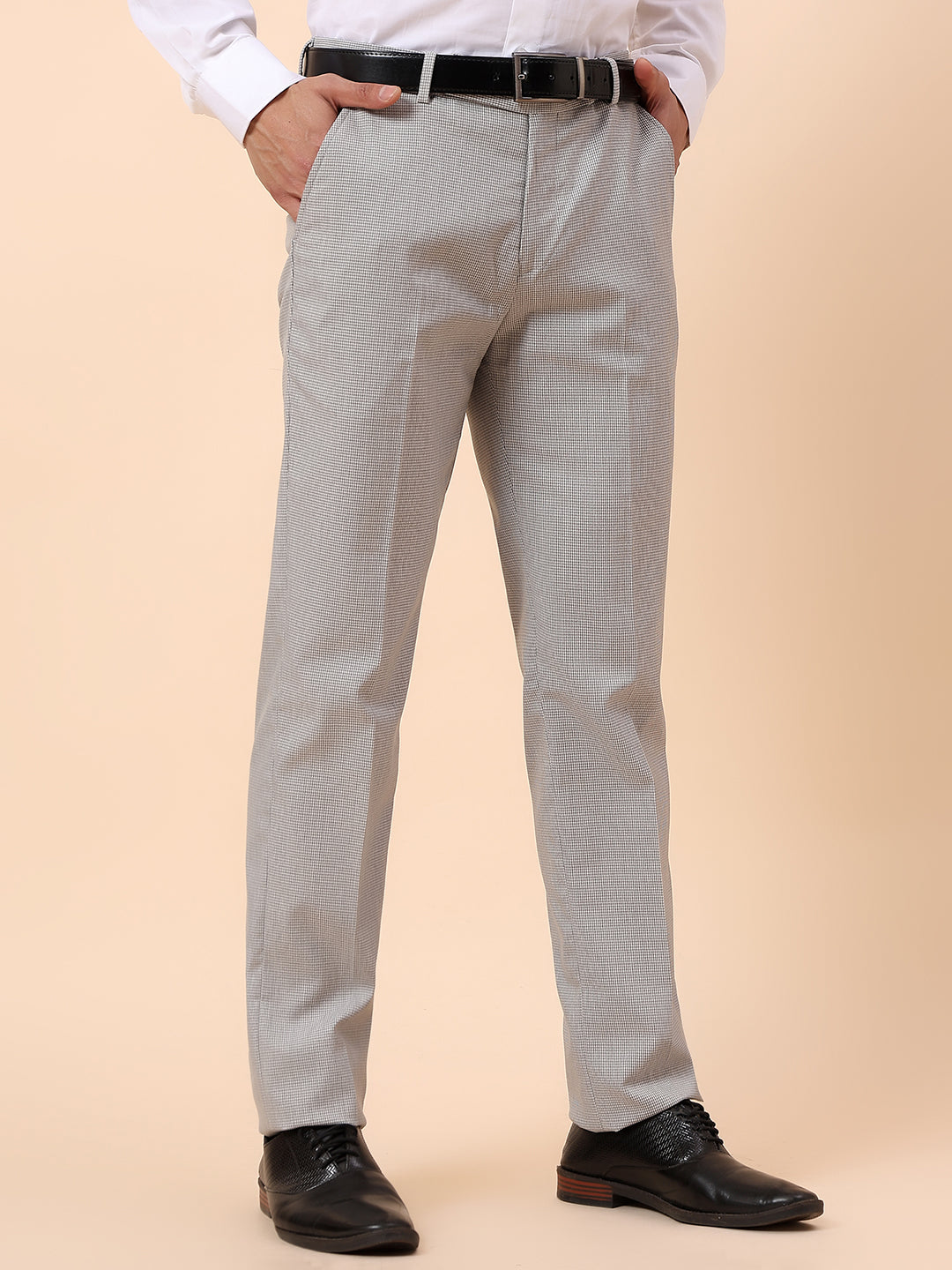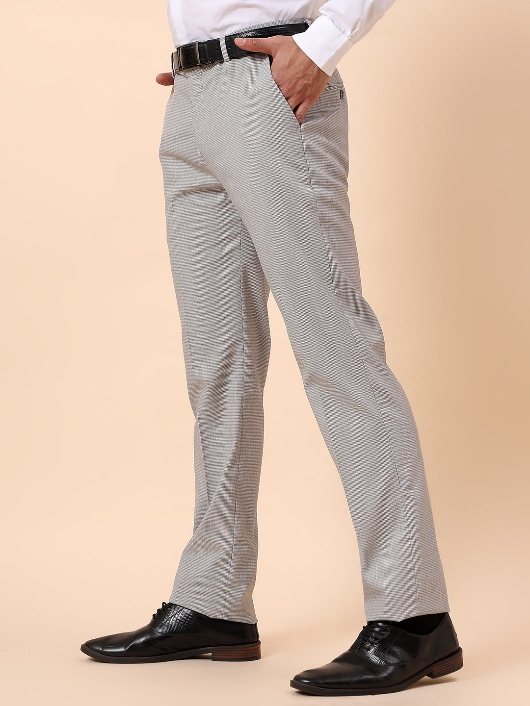 Formal Trouser for Men | Breathable & Soft with Color Fastness Regular Fit Poly Viscose Fabric Self Design Pattern Hook & Bar Closure