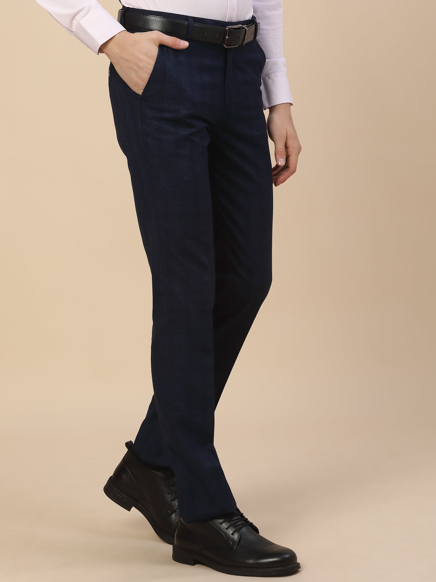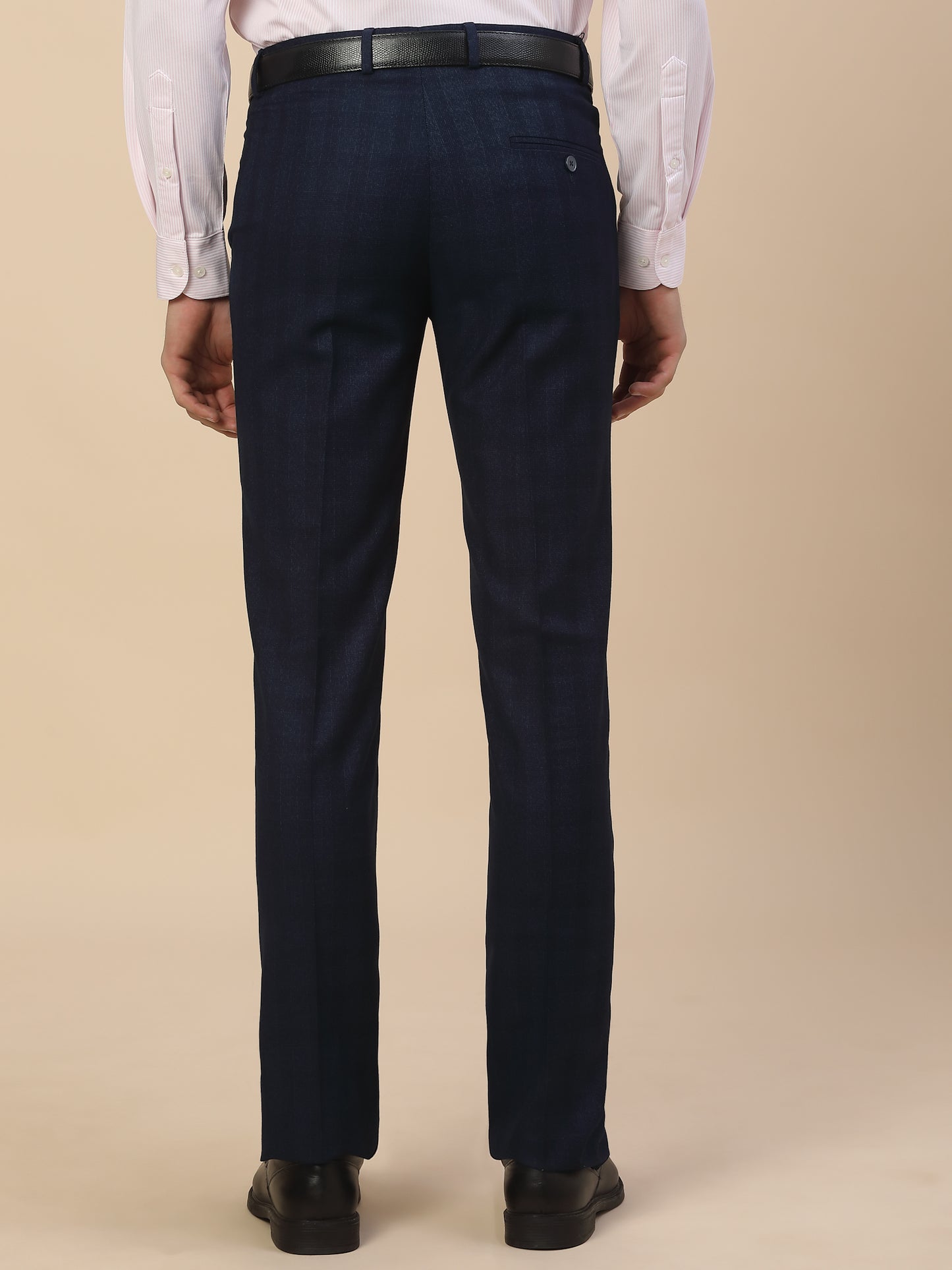 Men's Checkered Navy Blue Non Pleated Regular...