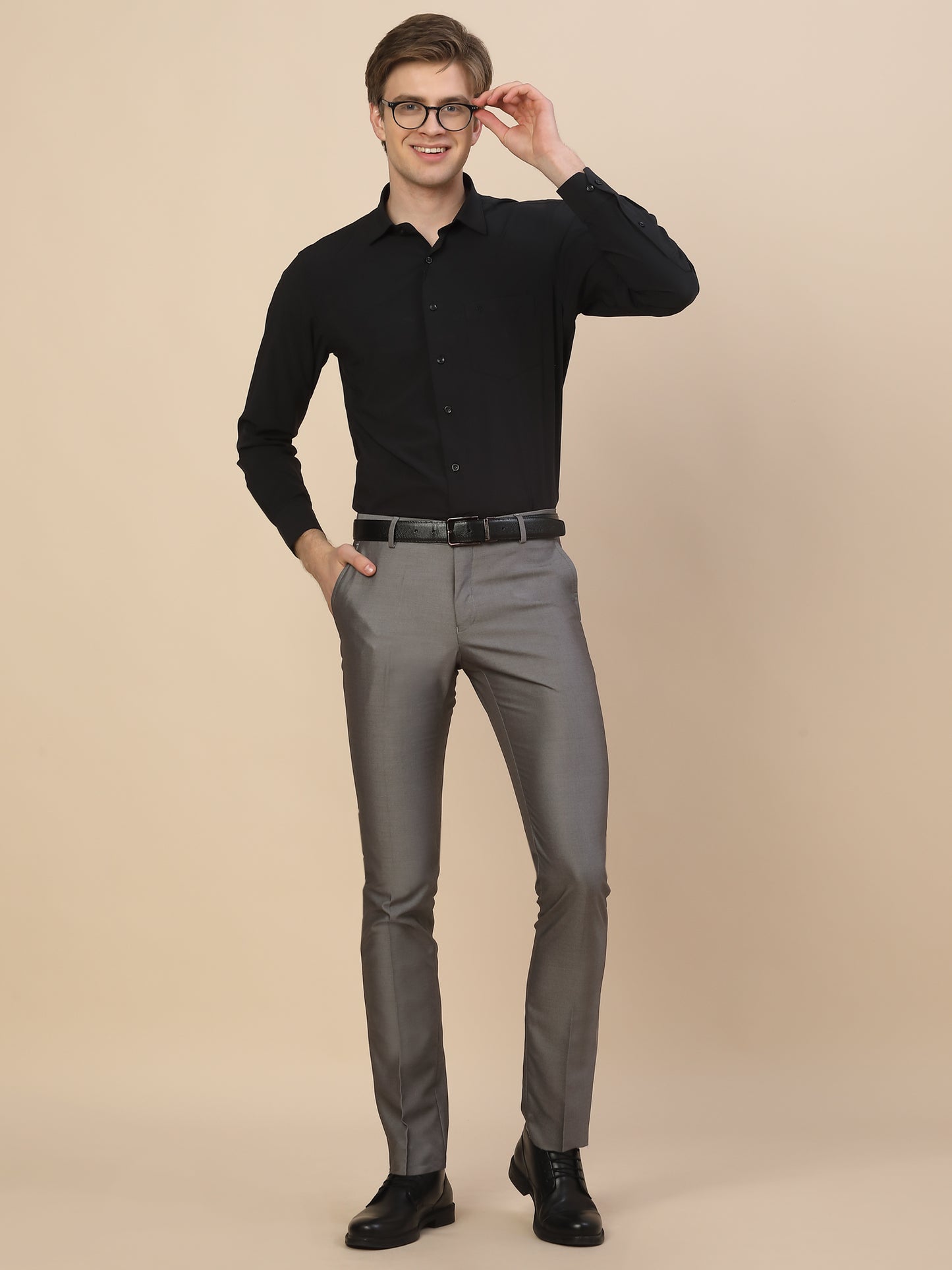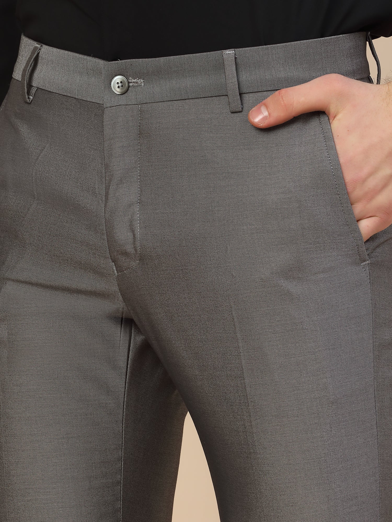 Formal Trouser for Men | Breathable & Soft with Color Fastness Regular Fit Terry Rayon Fabric Self Design Pattern Button Closure