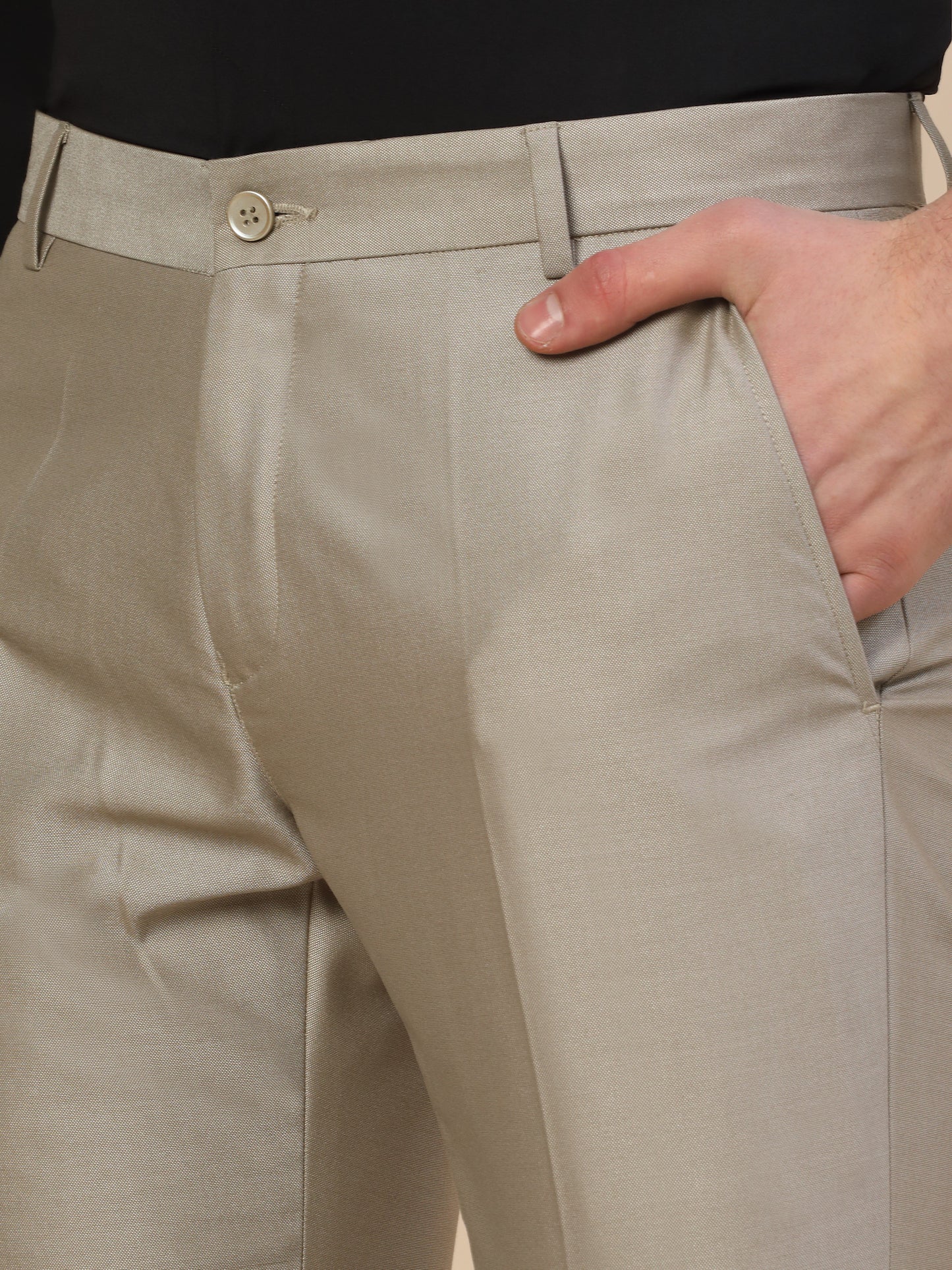 Formal Trouser for Men | Breathable & Soft with Color Fastness Regular Fit Terry Rayon Fabric Self Design Pattern Button Closure