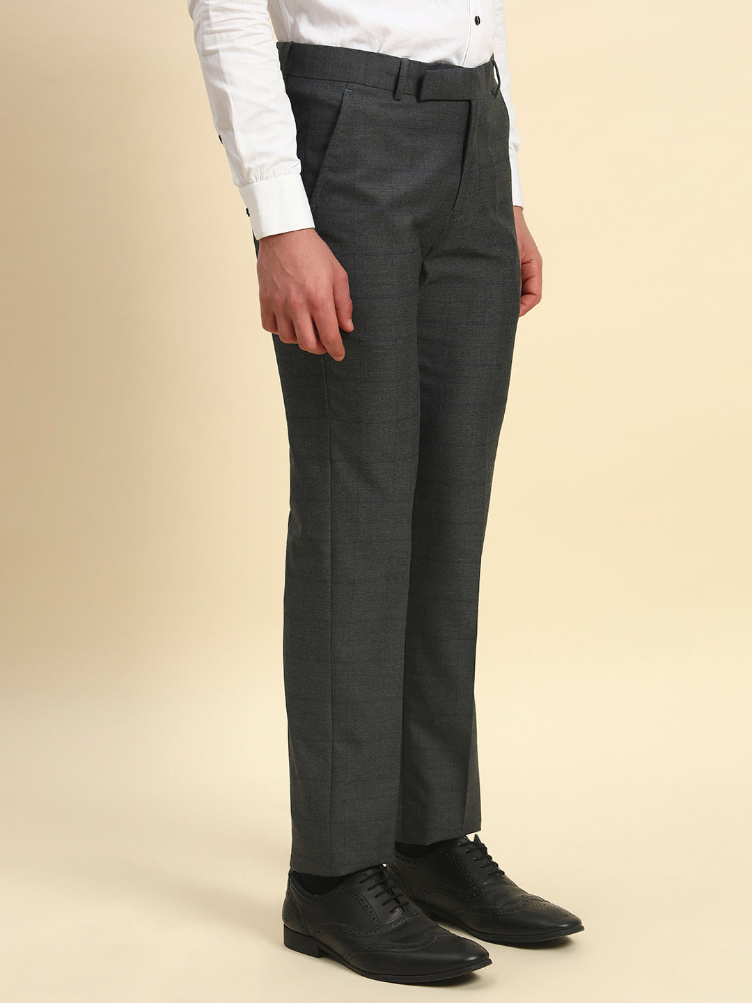 Formal Trouser for Men l Breathable & Soft with Color Fastness Regular Fit Poly Viscose Fabric Checkered Pattern Hook & Bar Closure