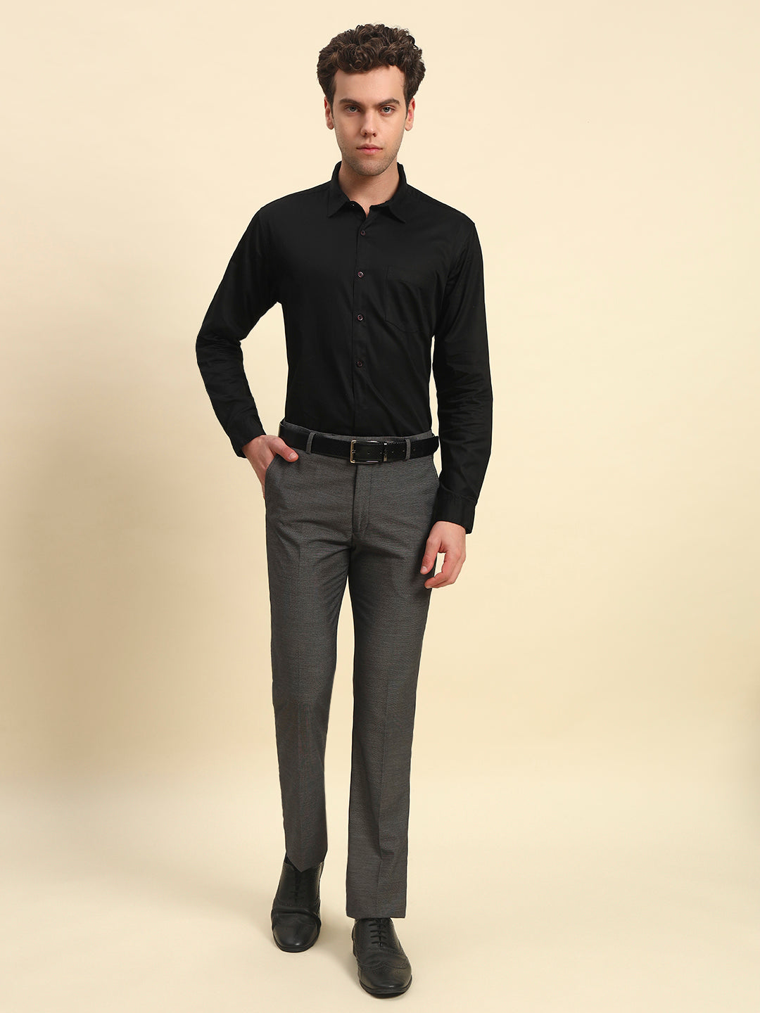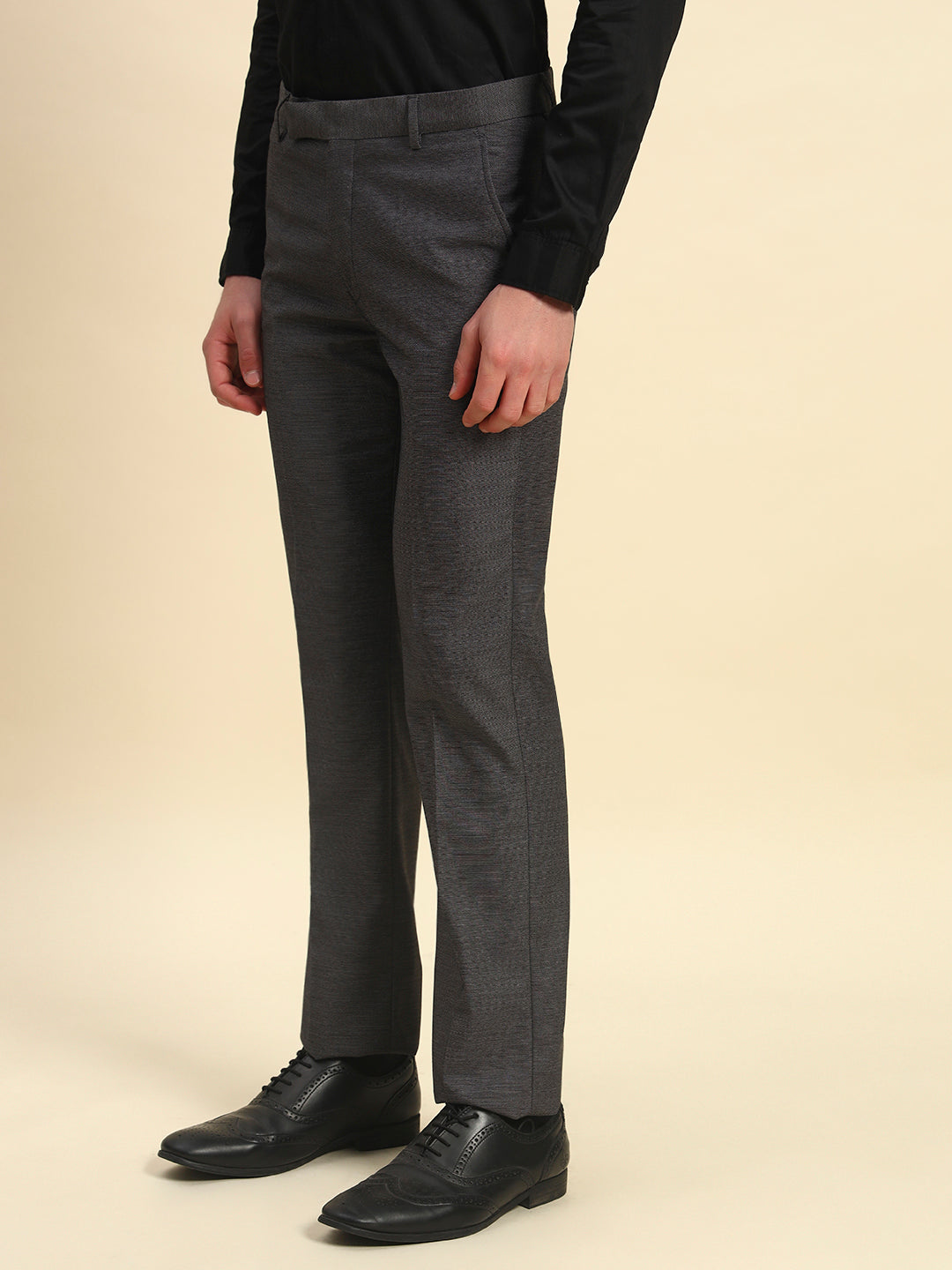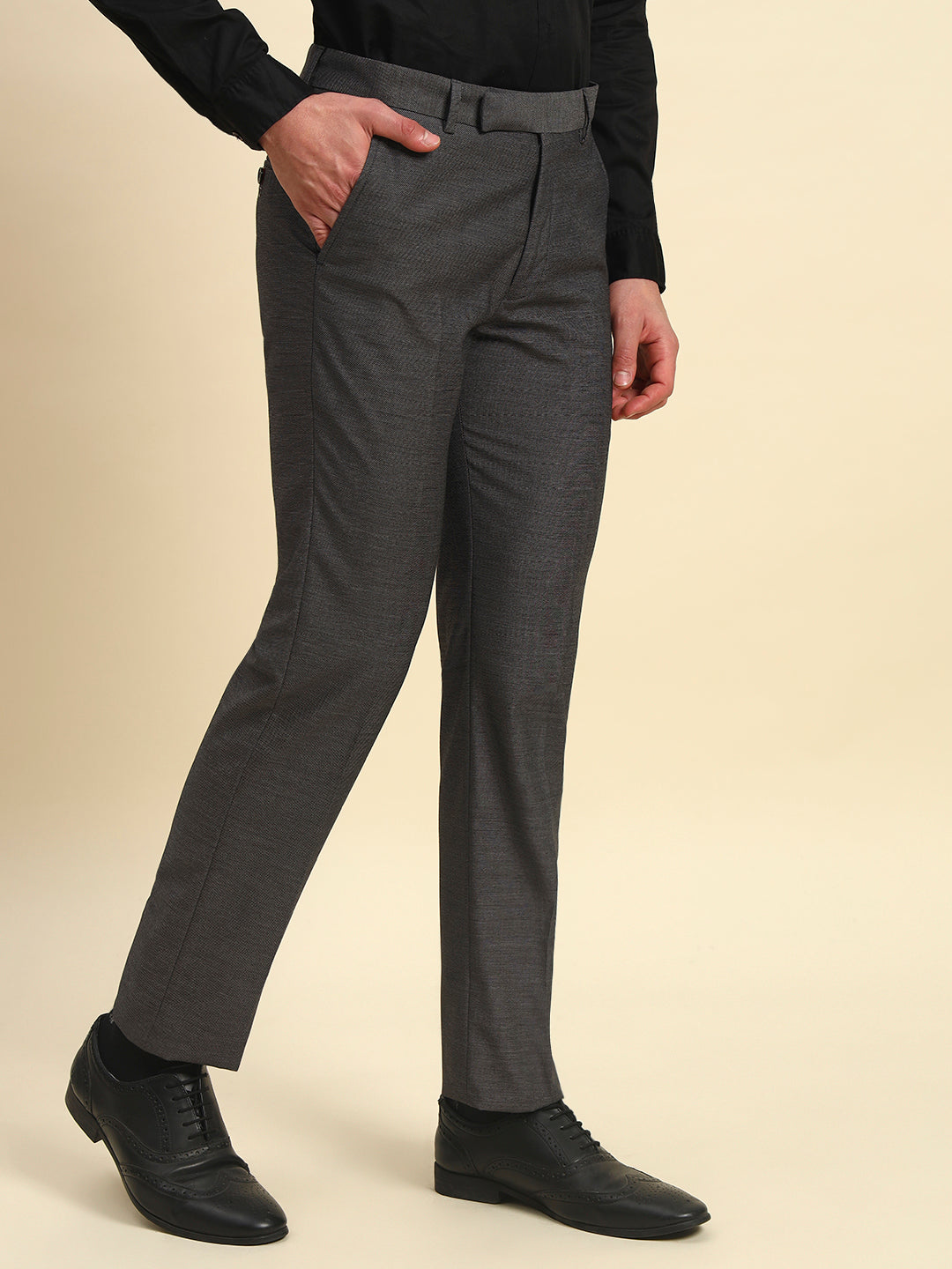 Formal Trouser for Men l Breathable & Soft with Color Fastness Regular Fit Poly Viscose Fabric Self Design Pattern Hook & Bar Closure