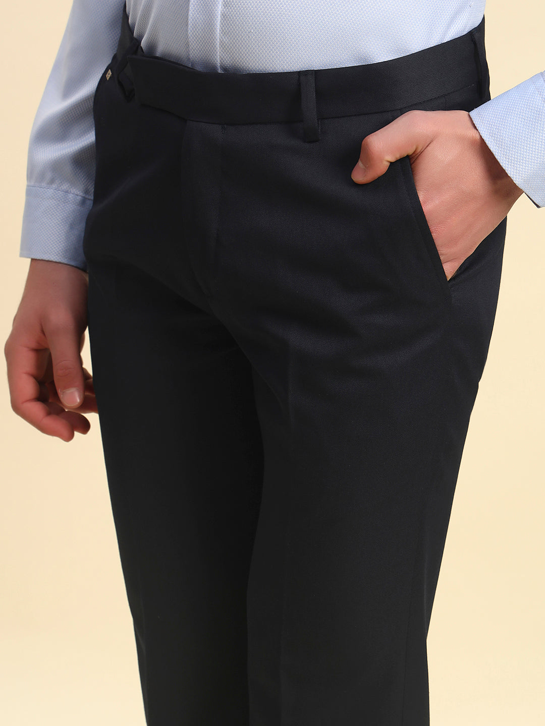 Formal Trouser for Men l Breathable & Soft with Color Fastness Regular Fit Poly Viscose Fabric Solid Pattern Hook & Bar Closure